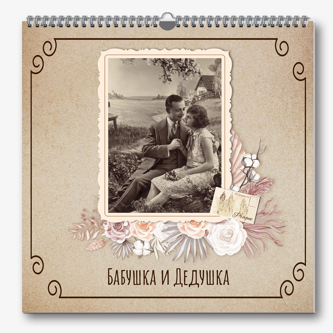 Бесплатный шаблон семейного календаря в подарок дедушке от внуков. Создайте макет своими руками в конструкторе календарей.