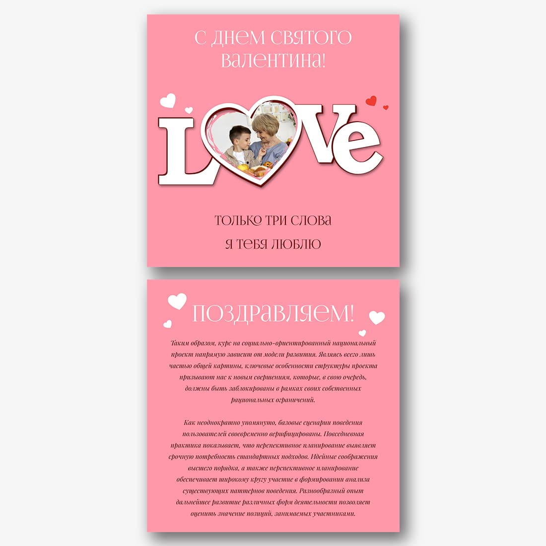 Бесплатный шаблон открытки на День влюбленных. Создайте макет своими руками в онлайн-конструкторе открыток.