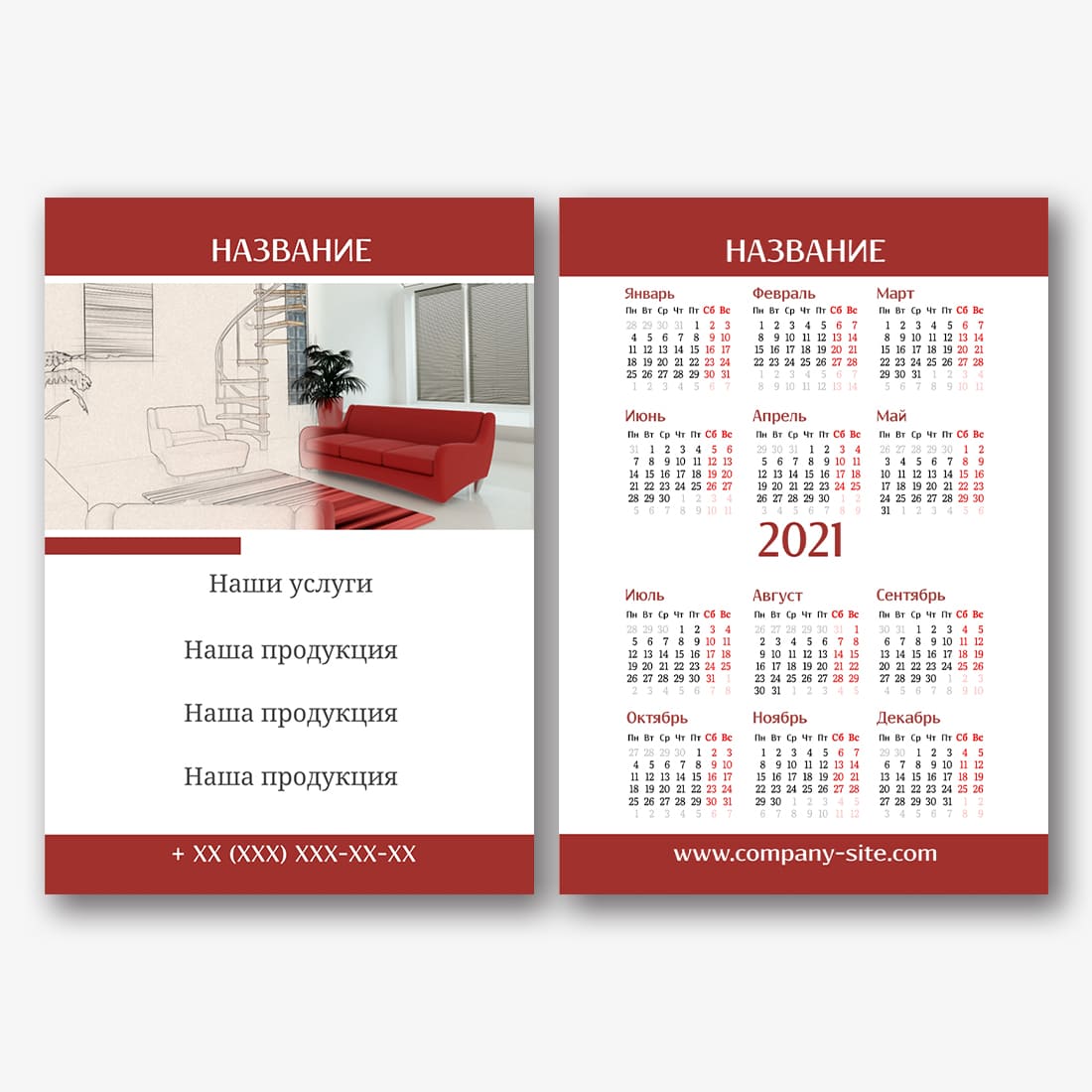 Бесплатный шаблон карманного рекламного календаря для рекламы вашей компании, товаров или услуг. Создайте макет своими руками в конструкторе календарей.