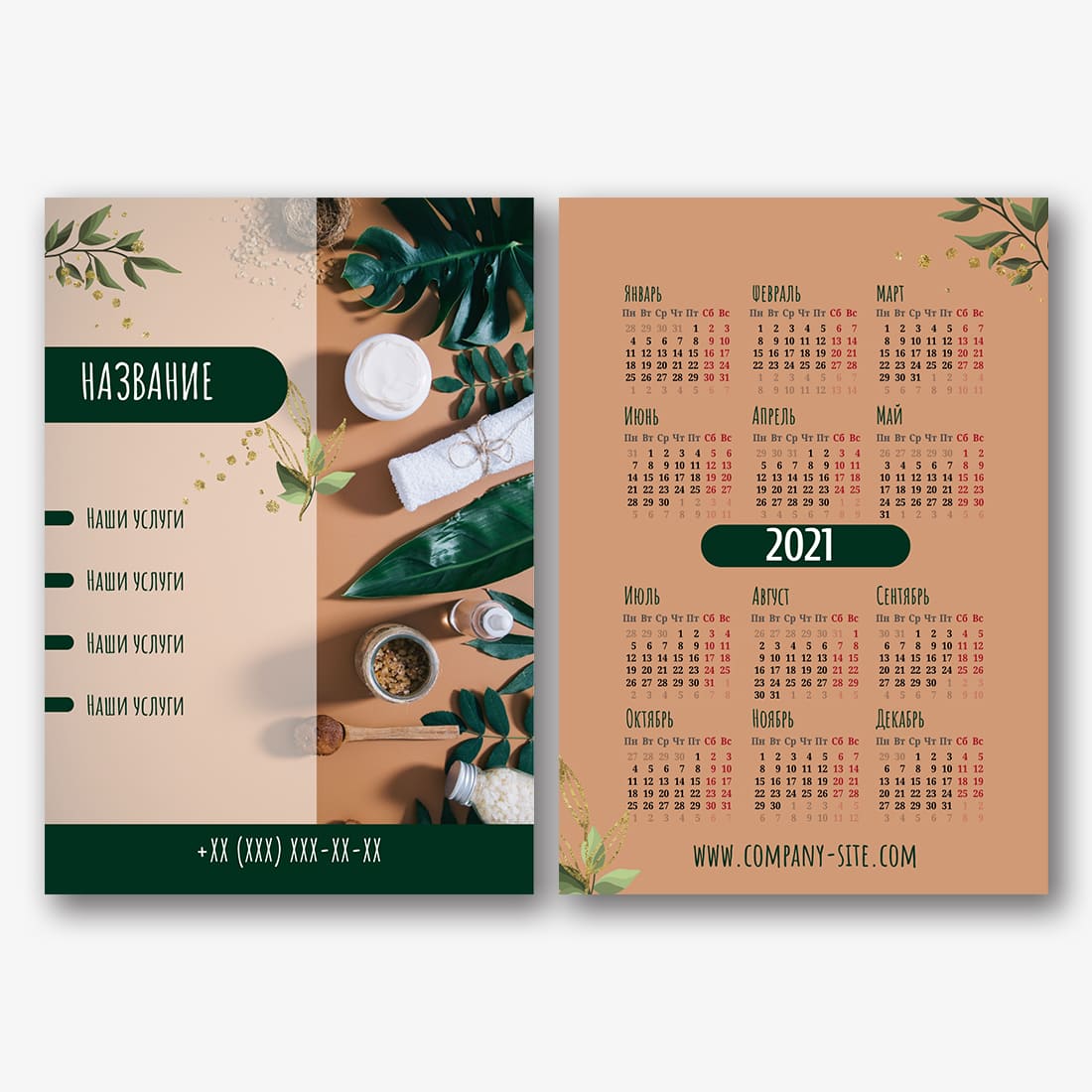 Бесплатный шаблон карманного рекламного календаря для рекламы натуральной природной косметики. Создайте макет своими руками в конструкторе календарей.
