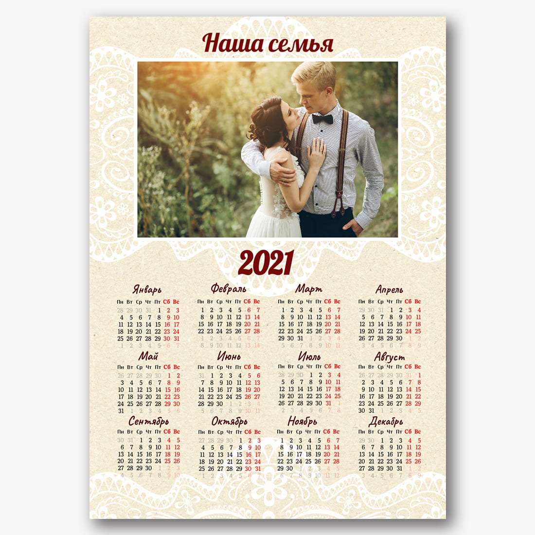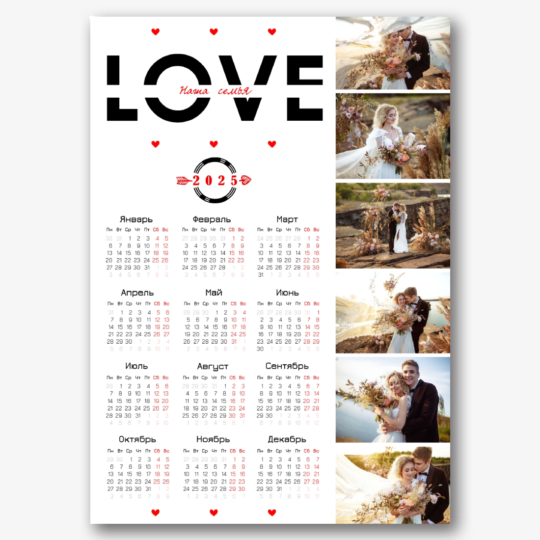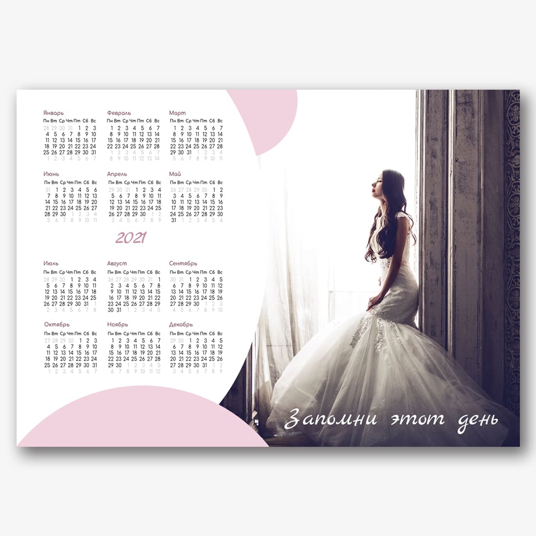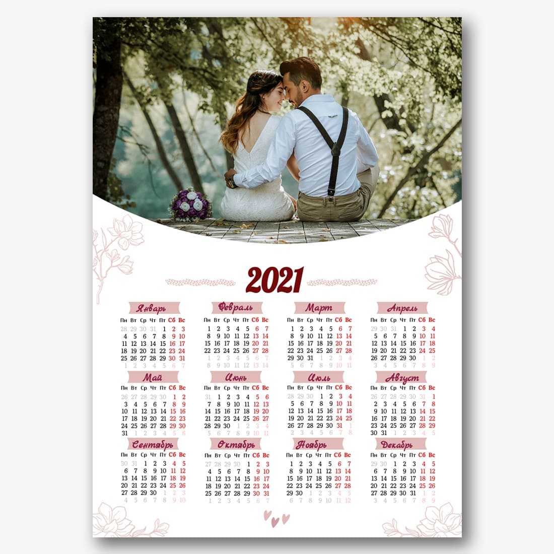 Бесплатный шаблон свадебного календаря онлайн для свадебного агентства, свадебного фотографа. Создайте макет своими руками в конструкторе календарей.