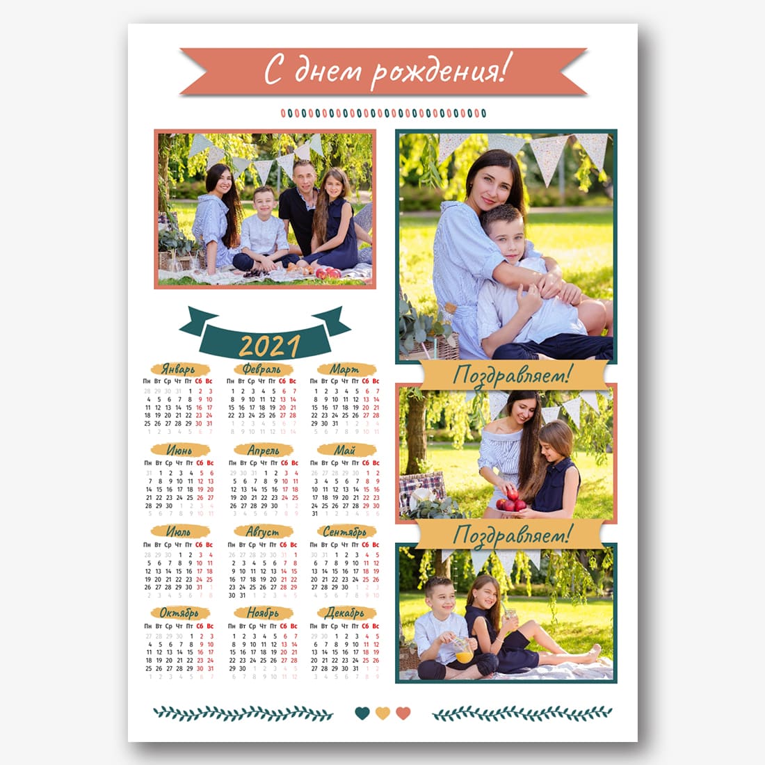 Бесплатный шаблон новогоднего семейного календаря-плаката онлайн с памятными моментами. Создайте макет своими руками в онлайн-конструкторе календарей.