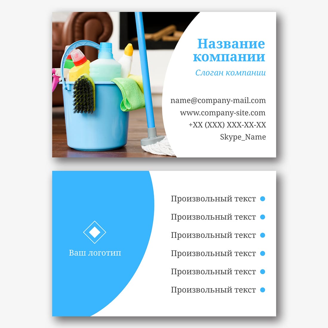 Бесплатный шаблон визитки клининговой компании, клининг-менеджера, уборщиков квартир и офисов. Создайте макет своими руками в конструкторе визиток.
