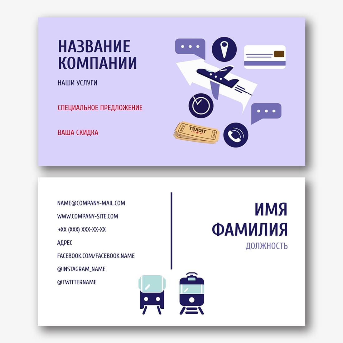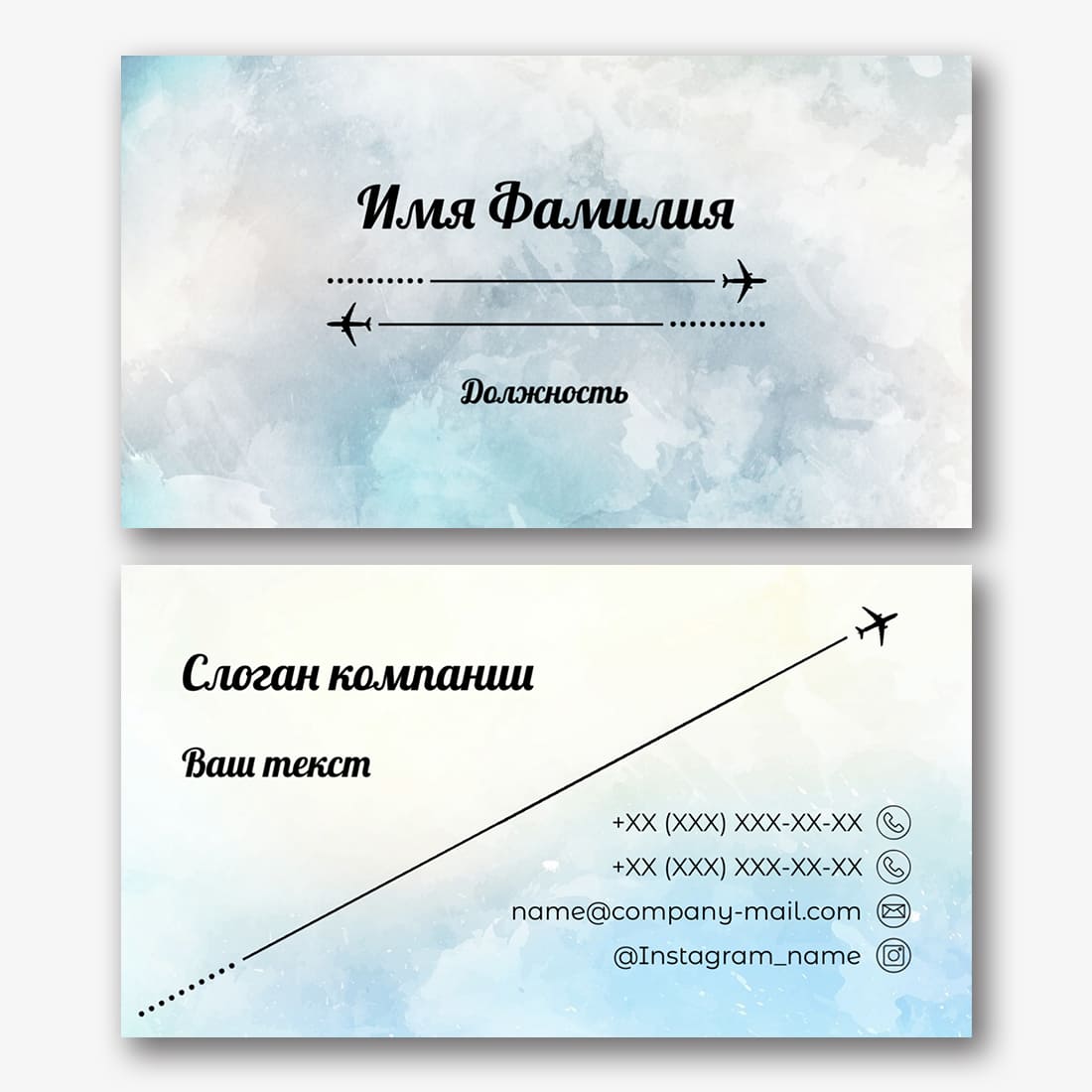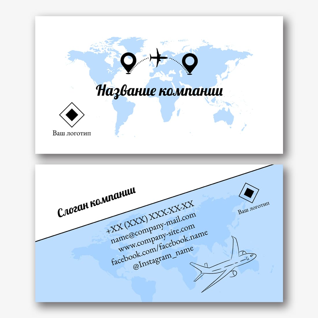 Бесплатный шаблон визитки турагентства, менеджера по туризму, турагента. Создайте макет своими руками в конструкторе визиток.