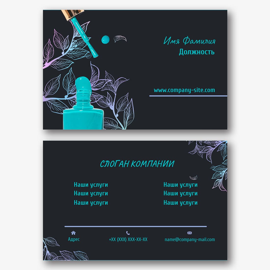 Бесплатный шаблон черной визитки для спа центра, спа салона, физиотерапевта и ароматерапевта. Создайте макет визитки своими руками в конструкторе визиток.