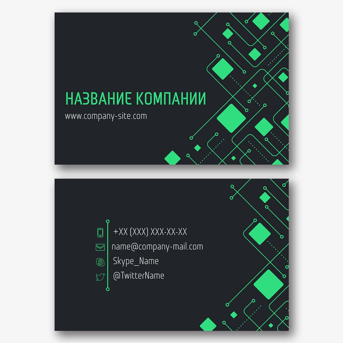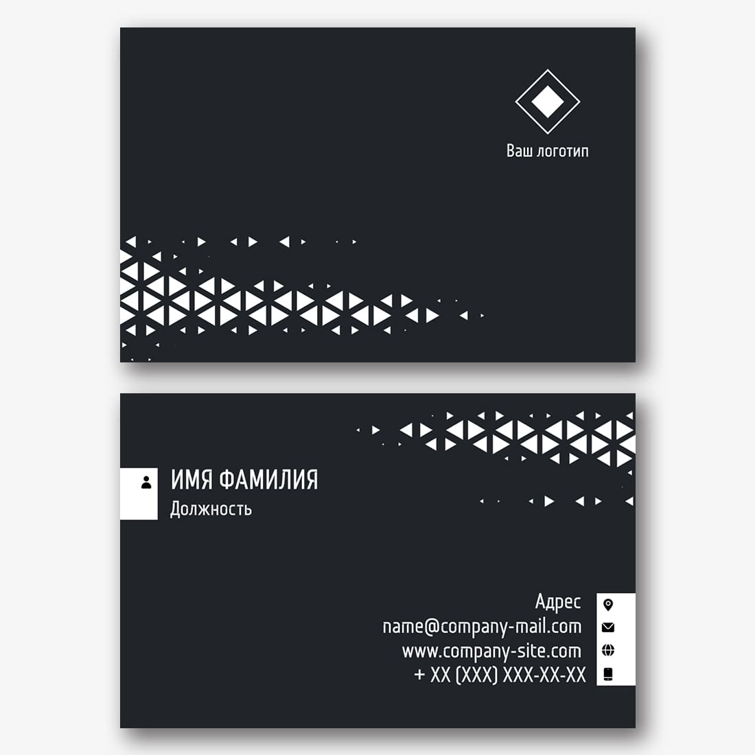 Бесплатный шаблон черной абстрактной, элегантной, стильной визитки. Создайте макет своими руками в конструкторе визиток.