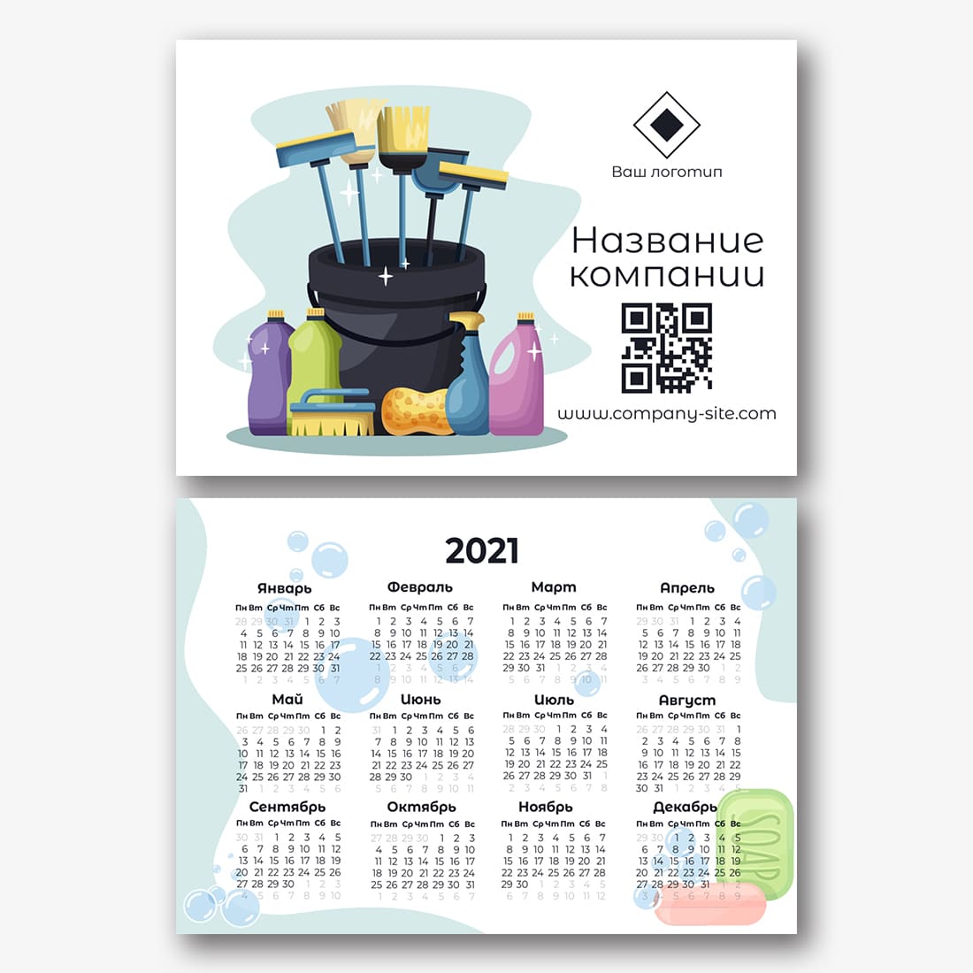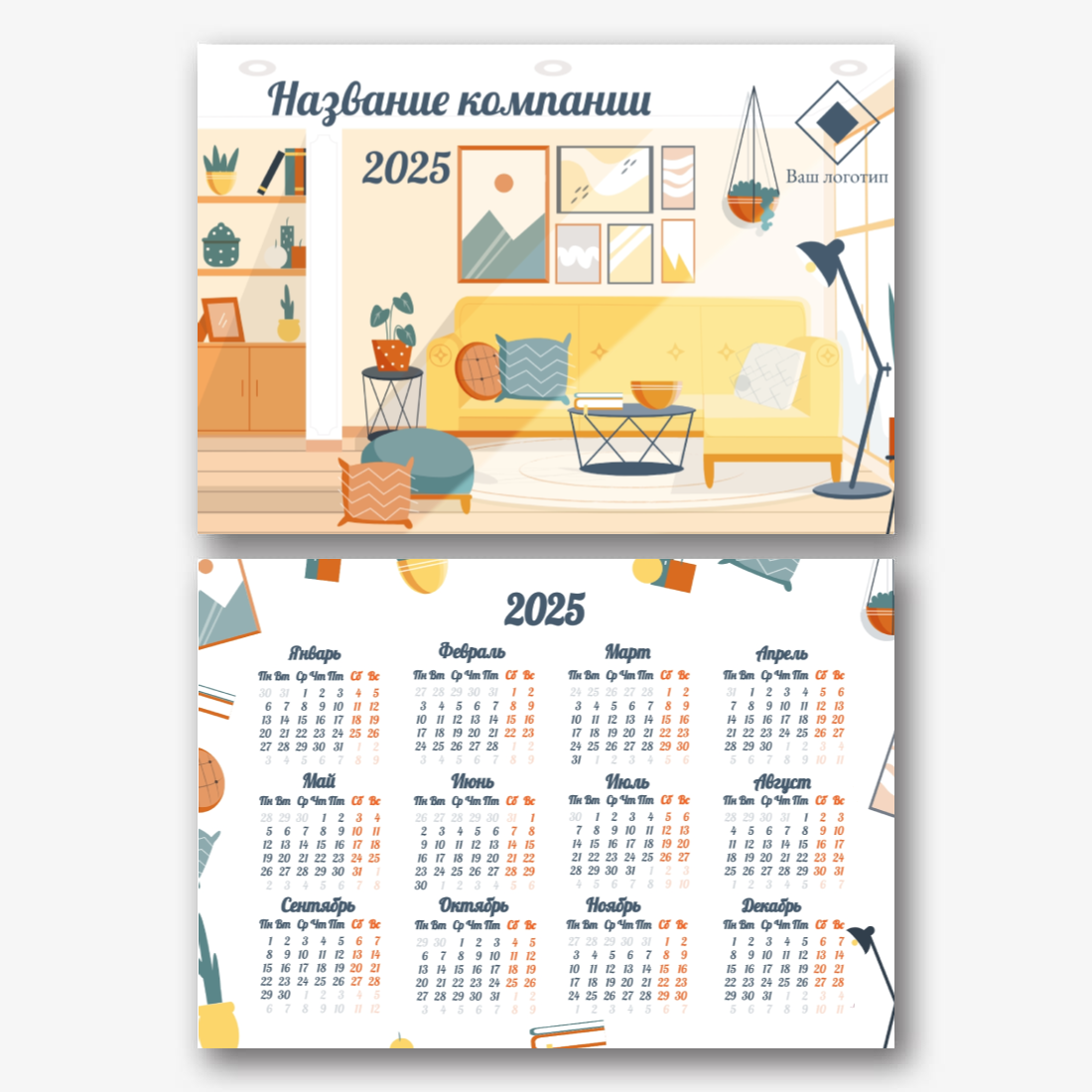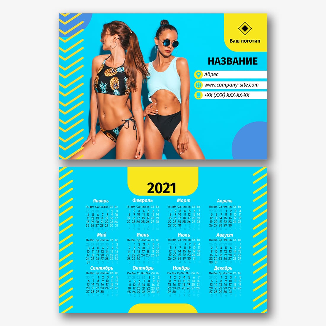 Бесплатный шаблон карманного рекламного календаря для рекламы вашей компании, товаров или услуг. Создайте макет своими руками в конструкторе календарей.