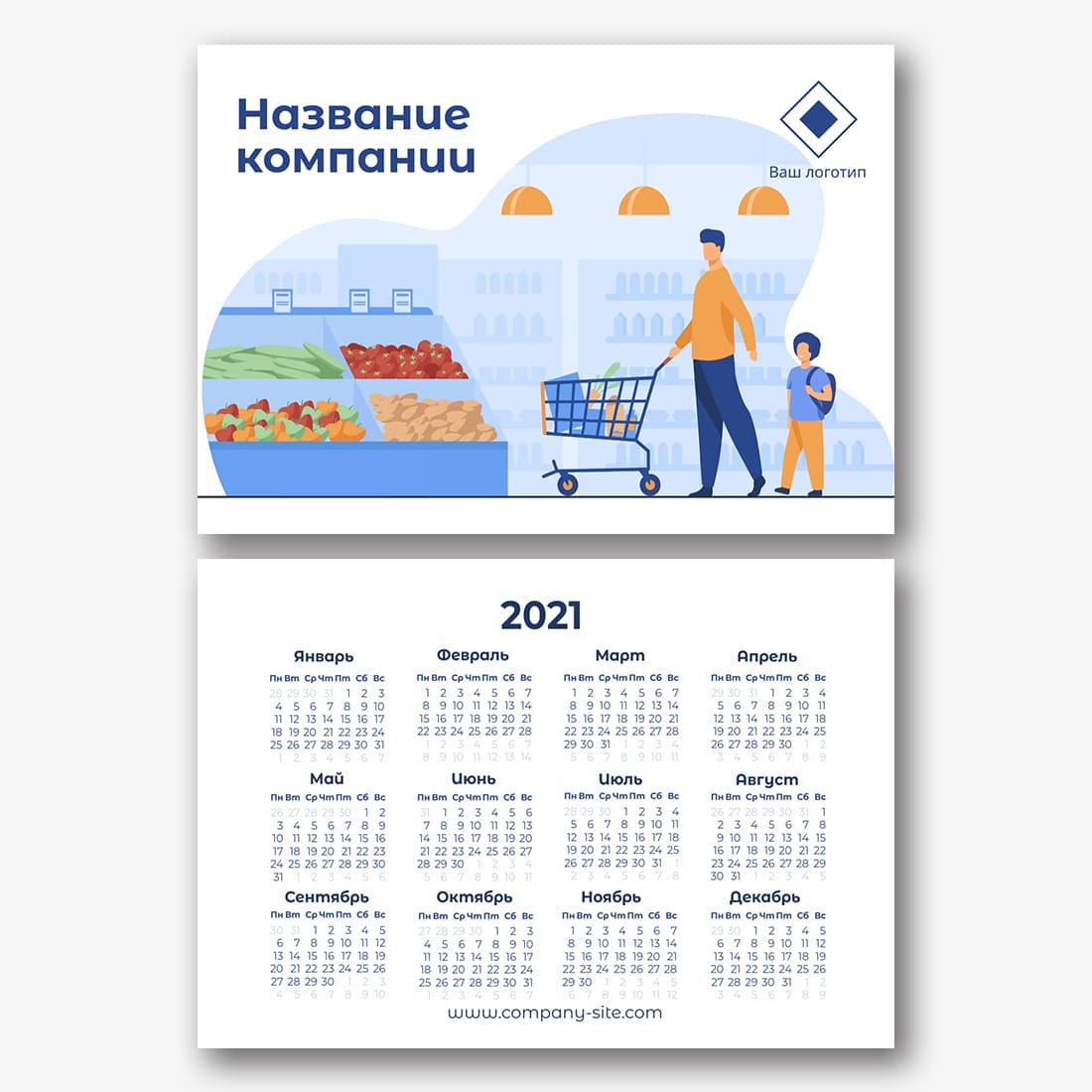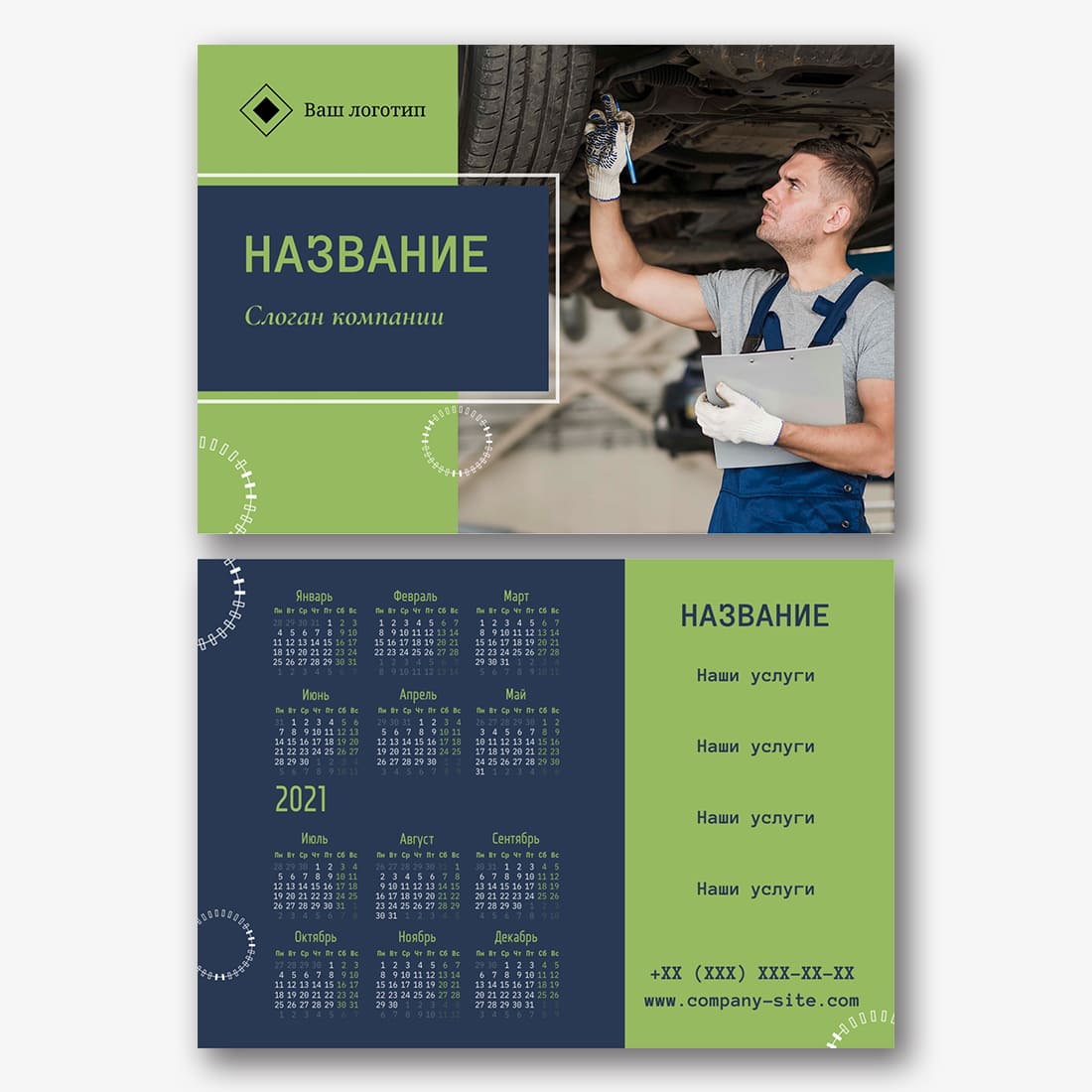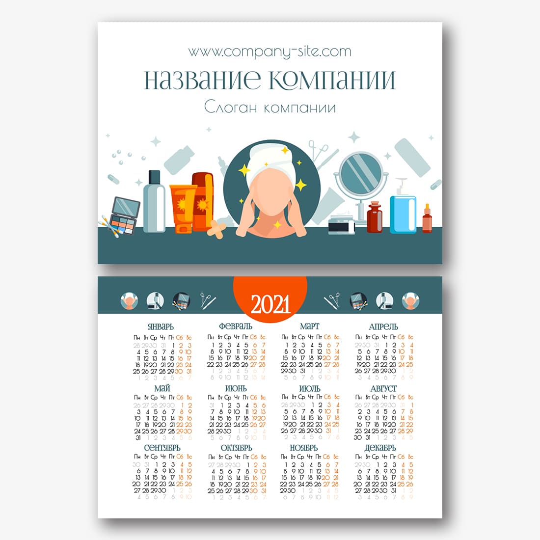 Бесплатный шаблон карманного рекламного календаря для рекламы вашей компании, товаров или услуг. Создайте макет своими руками в конструкторе календарей.