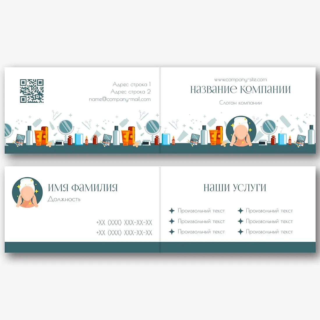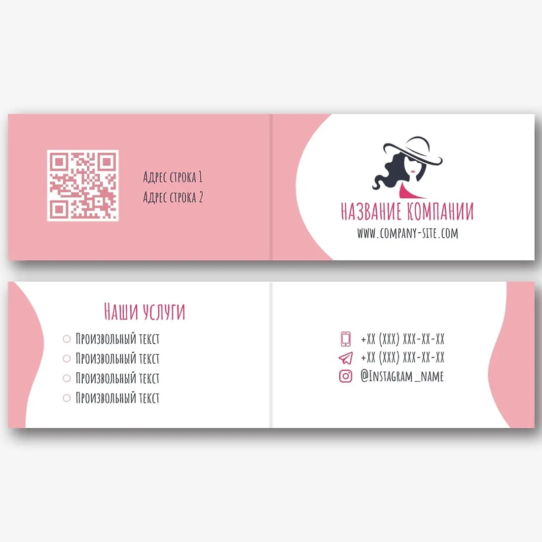 Бесплатный шаблон двойной визитки для визажиста или салона красоты. Создайте макет своими руками в конструкторе визиток.