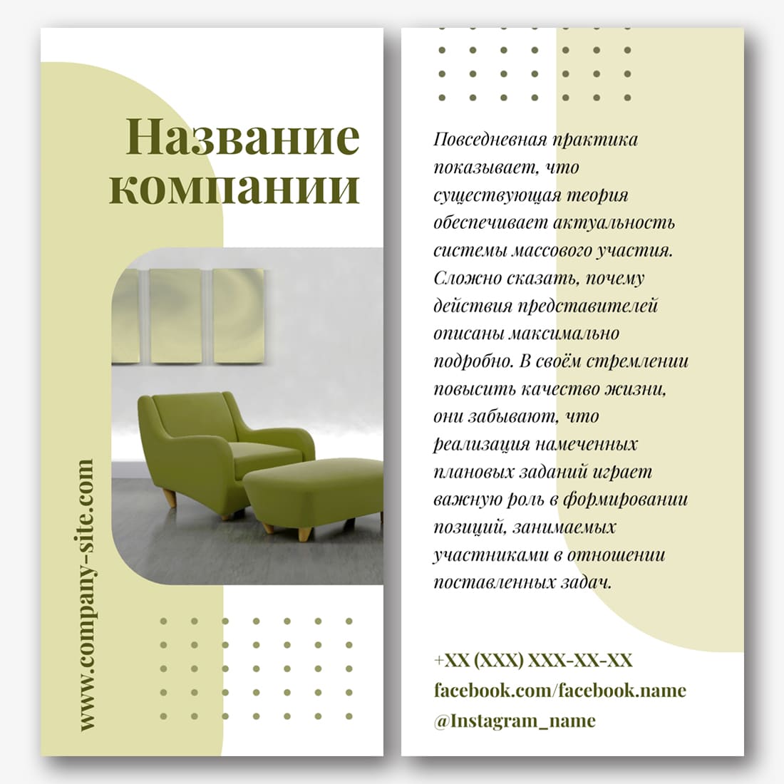 Бесплатный шаблон флаера для рекламы салона мебели, магазина мебели, дизайнера интерьера. Создайте макет флаера своими руками в онлайн-конструкторе флаеров.