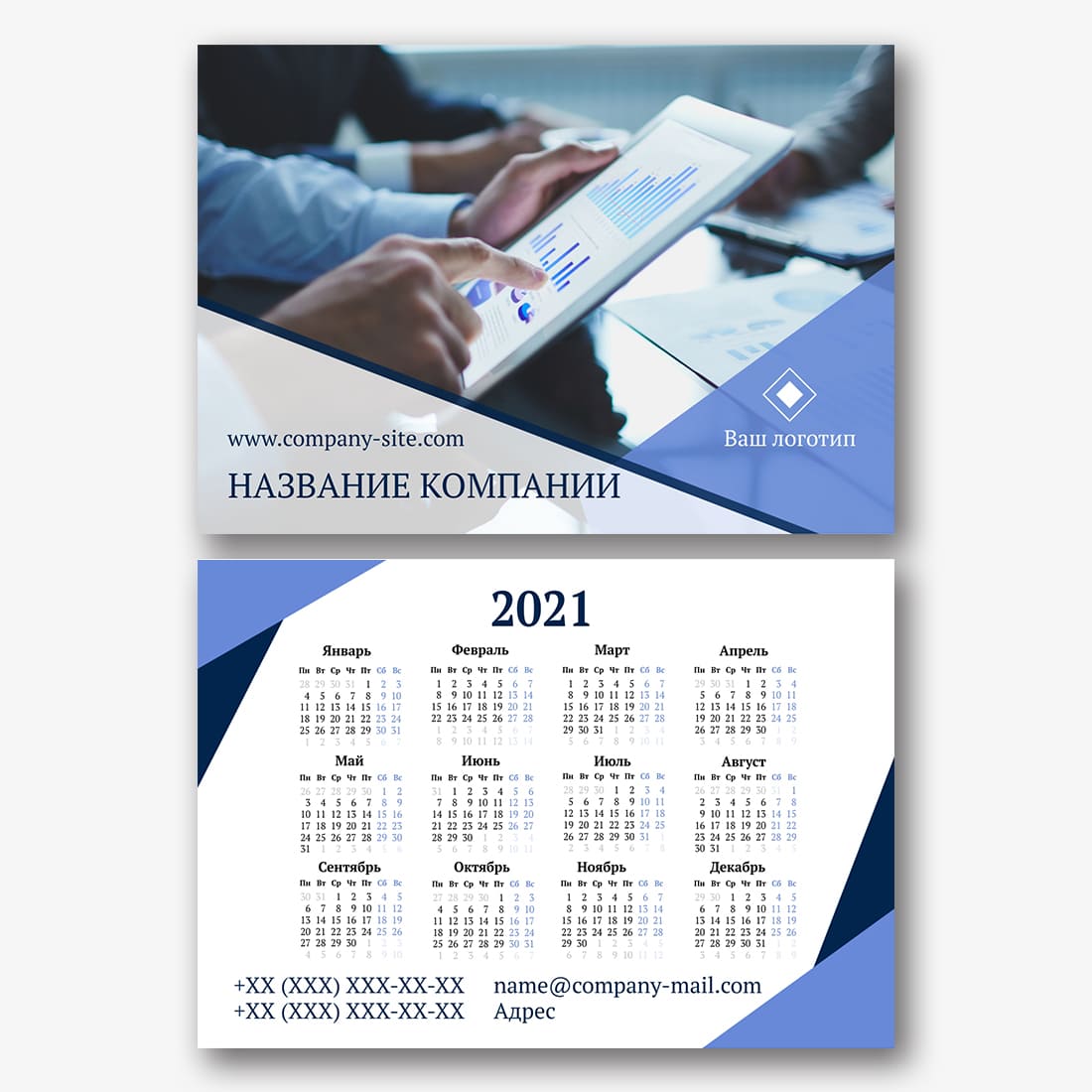 Бесплатный шаблон карманного бизнес календаря для вашей компании, товаров или услуг. Создайте макет своими руками в конструкторе календарей.
