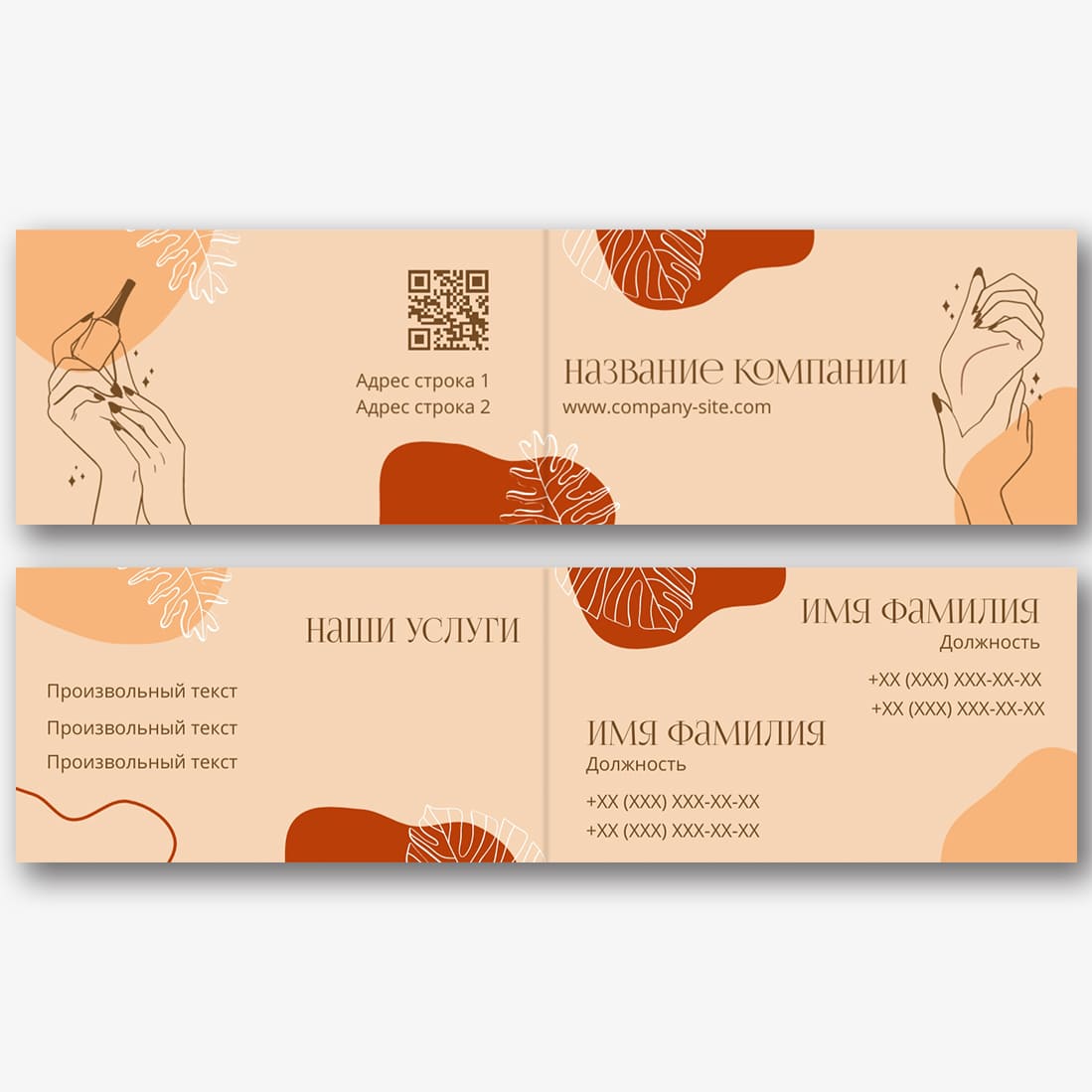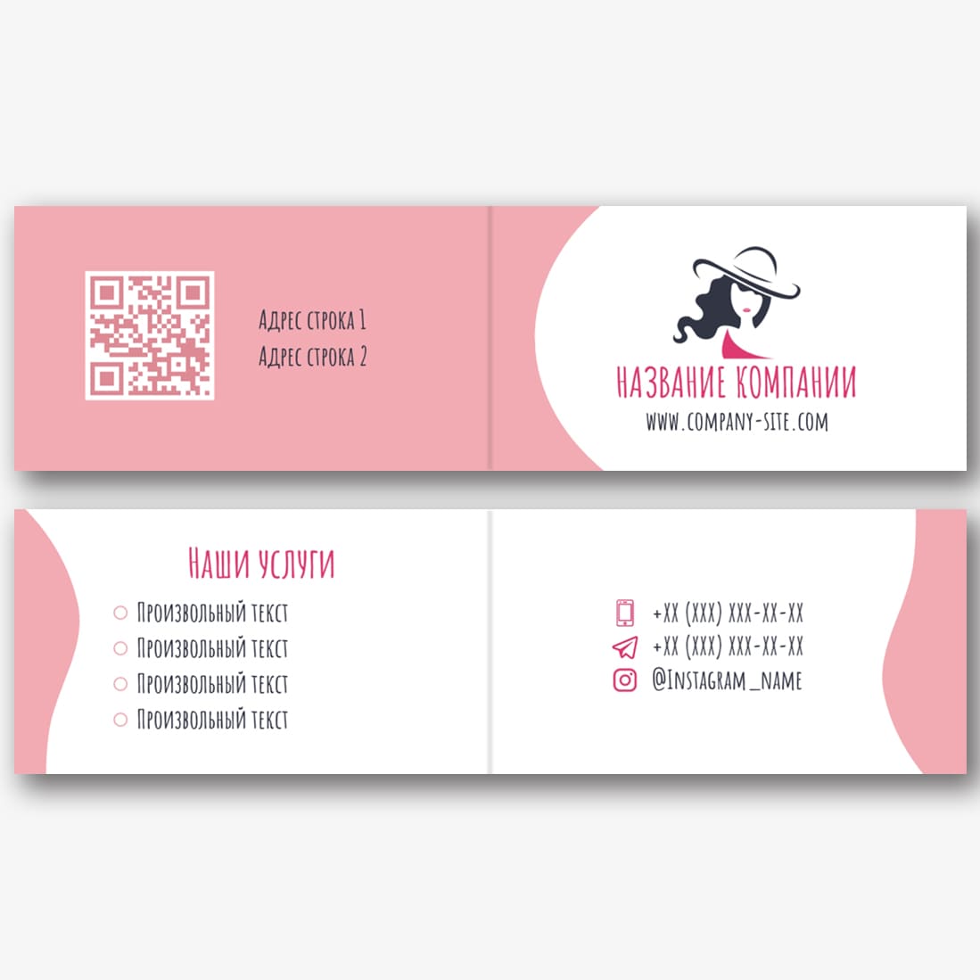 Бесплатный шаблон двойной визитки для косметологического центра, косметолога, студии красоты. Создайте макет своими руками в конструкторе визиток.