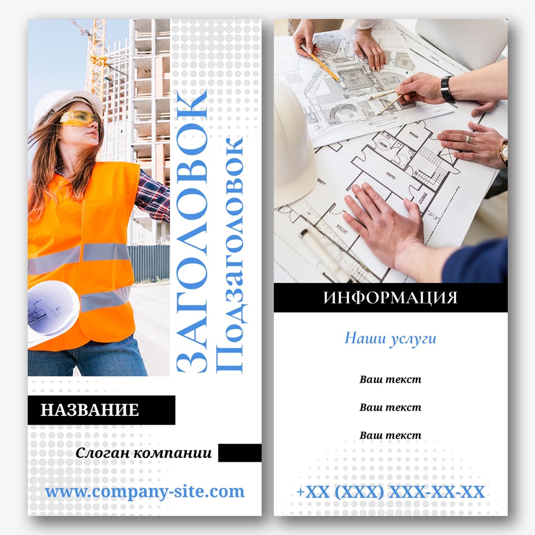 Бесплатный шаблон флаера для рекламы строительной компании, прораба, строительной бригады. Создайте макет флаера своими руками в онлайн-конструкторе флаеров.