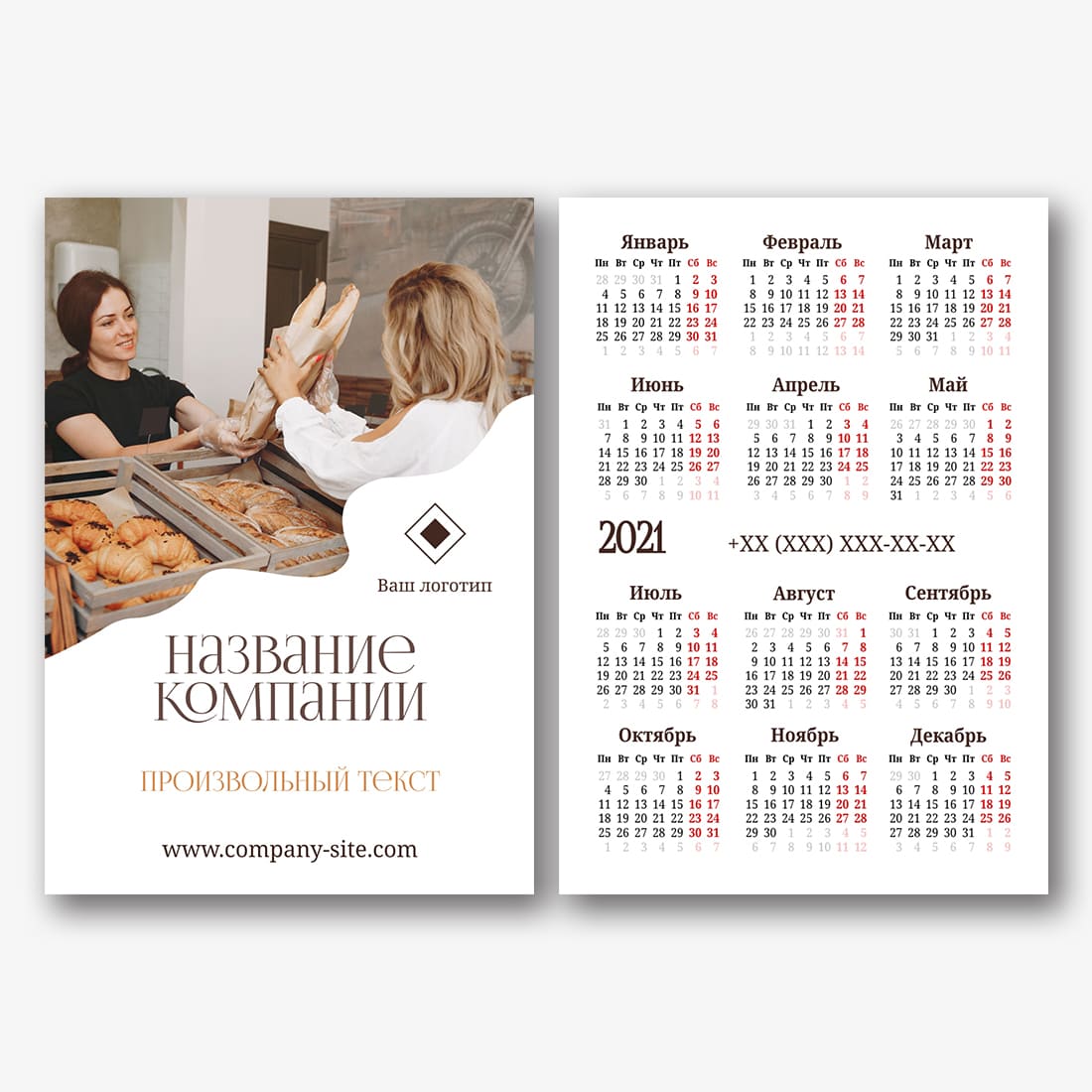 Бесплатный шаблон карманного календаря онлайн для рекламы службы доставки. Создайте макет своими руками в конструкторе календарей.