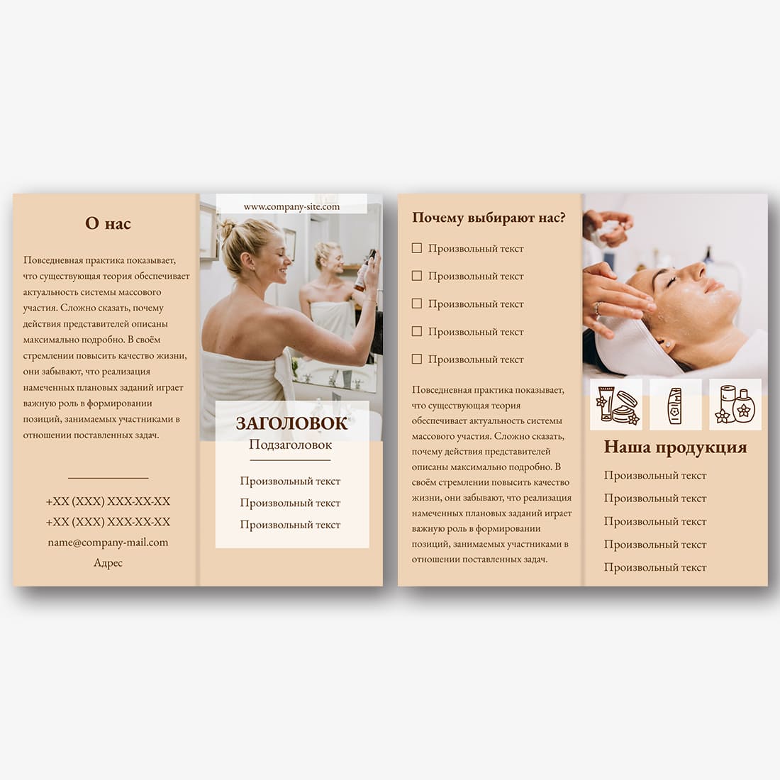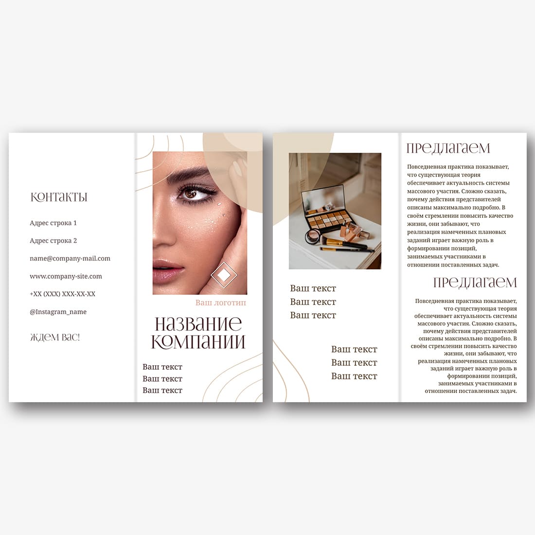 Бесплатный шаблон акционного буклета онлайн магазина косметики, производителя косметики. Создайте макет буклета своими руками в онлайн-конструкторе буклетов.