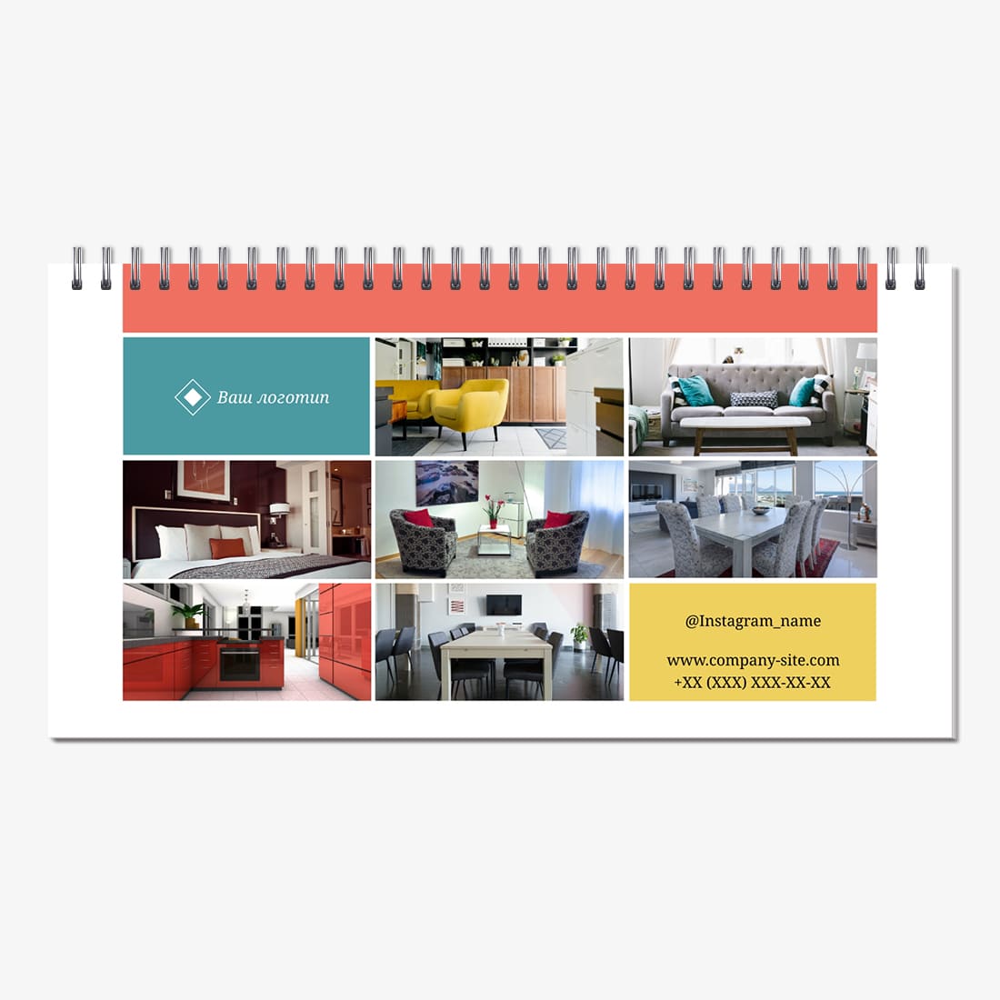 Бесплатный шаблон календаря-домика перекидного онлайн с портфолио для фотостудий и фотографов с возможностью редактирования его в конструкторе календарей.
