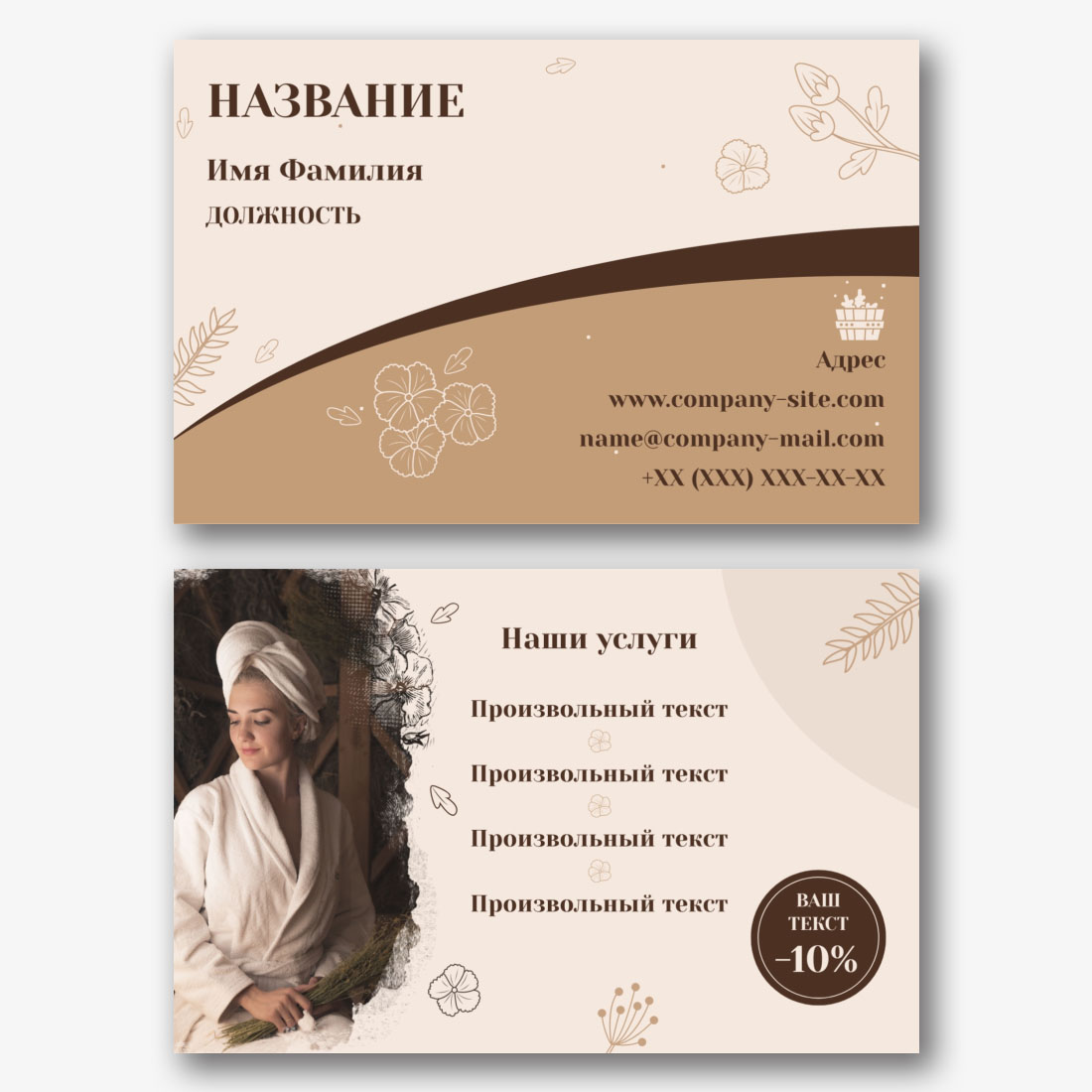 Шаблон евровизитки для банщика с учетом тончайших деталей и требований к стилю. Легко адаптируется под ваши предпочтения и потребности. Идеальное сочетание красоты, функциональности и творчества для профессионального впечатления в бизнес-мире.