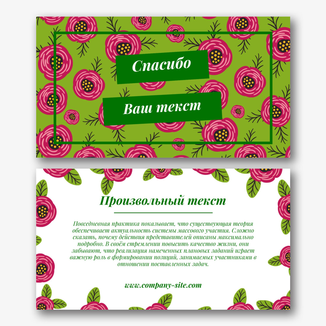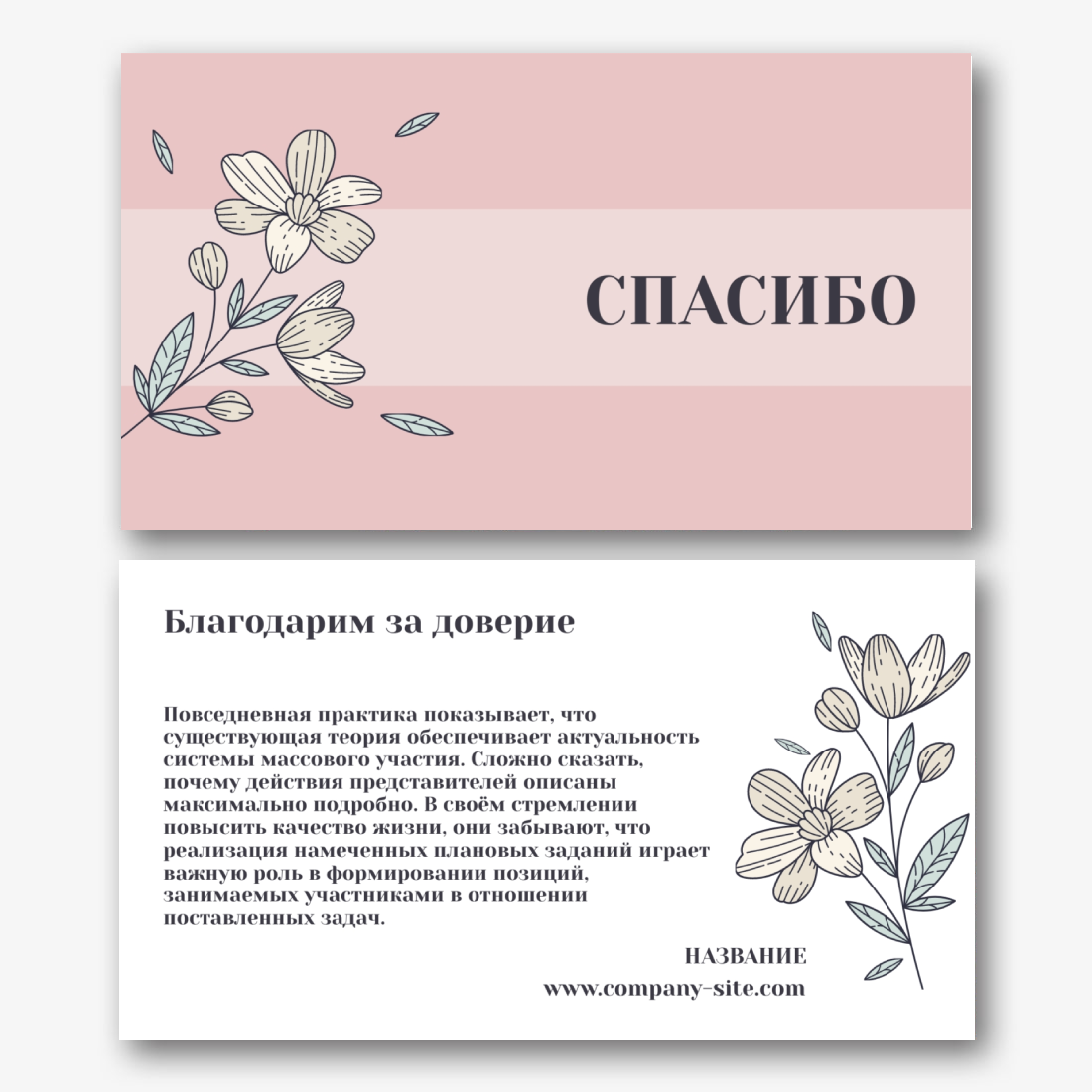 Бесплатный шаблон карточки спасибо с цветами - элегантный дизайн для выражения благодарности. Легко настраивайте текст, шрифты, цвета в онлайн-конструкторе, добавляйте персональные элементы. Создайте уникальную карточку своими руками без специальных навыков.
