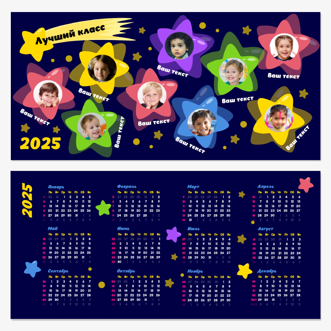 Бесплатный шаблон коллективного рекламного календаря-домика онлайн для школы. Создайте макет своими руками в конструкторе календарей.
