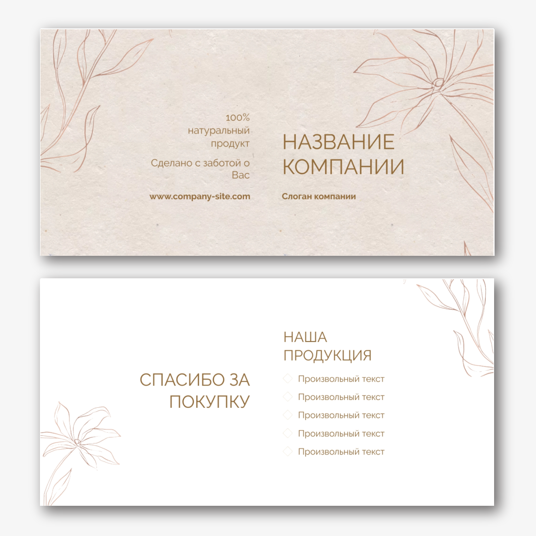 Бесплатный шаблон универсальной квадратной бирки-книжки. Подходит для магазинов одежды, ювелиров, флористов и производителей. Легкое редактирование текста, цветов, добавление логотипов и QR-кодов в онлайн-конструкторе.