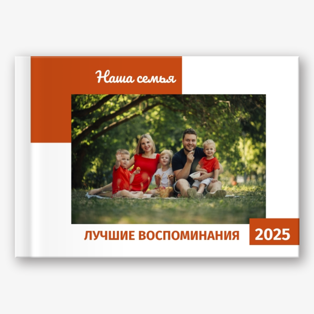 Шаблон семейной фотокниги в твердой обложке позволяет создать уникальный альбом, сохраняя важные моменты жизни. Изменяйте текст, добавляйте фото и настраивайте дизайн в удобном онлайн-конструкторе.