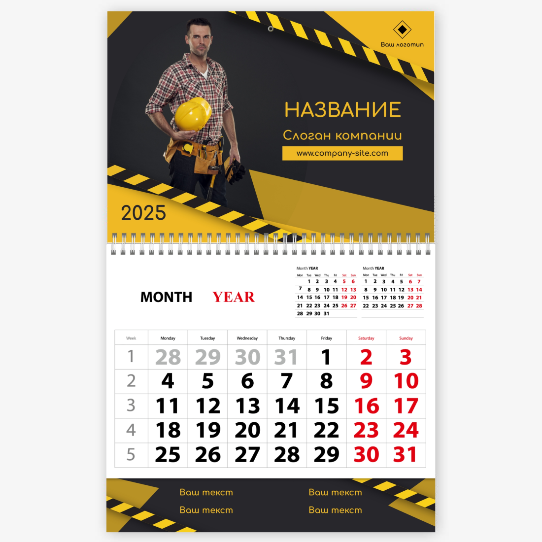 Шаблон квартального календаря для завода - идеальное решение для рекламы и продвижения вашего бизнеса. Легко настройте календарь в нашем онлайн-конструкторе и создайте уникальный дизайн.
