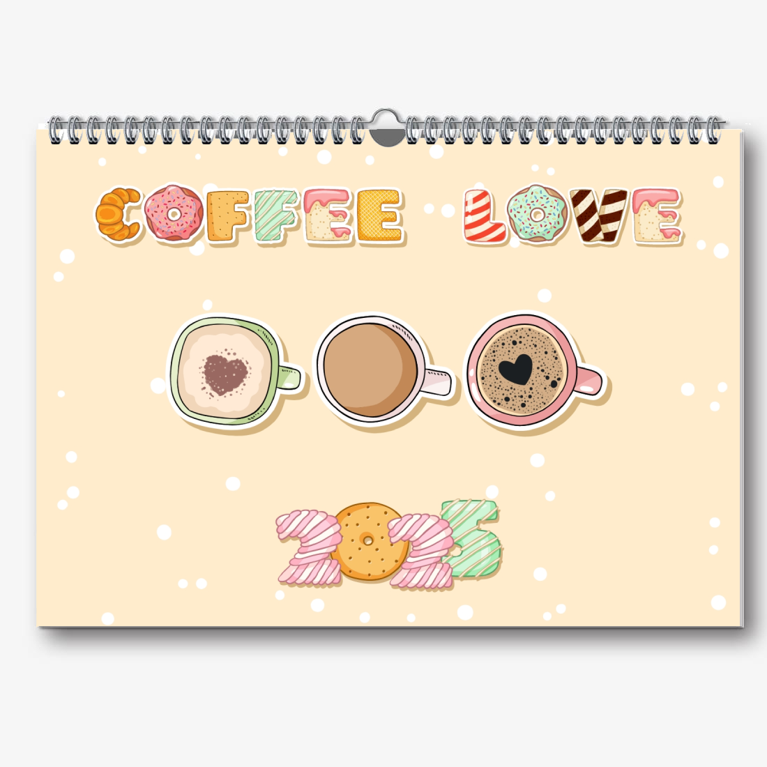 Бесплатный шаблон настенного календаря для рекламы вашей кофейни. Легко редактируйте дизайн с помощью онлайн-конструктора и создавайте уникальный календарь!