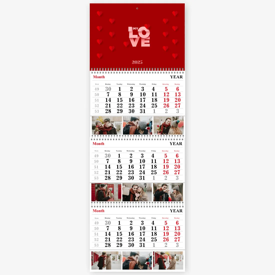 Шаблон календаря «Трио для влюбленных» поможет сохранить лучшие моменты. Персонализируйте онлайн: добавляйте фото, изменяйте текст и создавайте уникальный подарок.