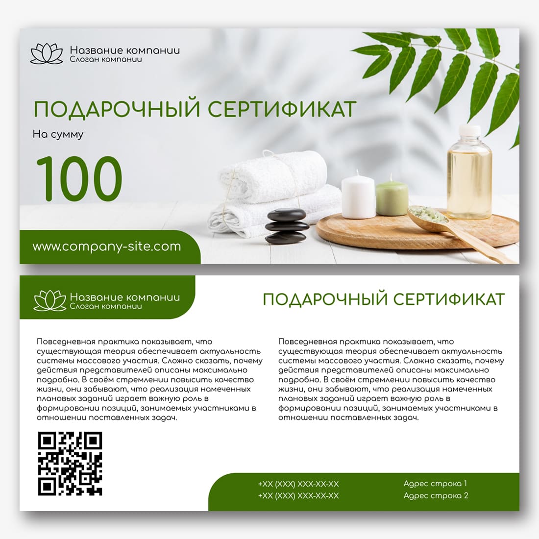 Бесплатный шаблон подарочного сертификата в салон красоты. Создавайте макеты своими руками в онлайн-конструкторе подарочных сертификатов.