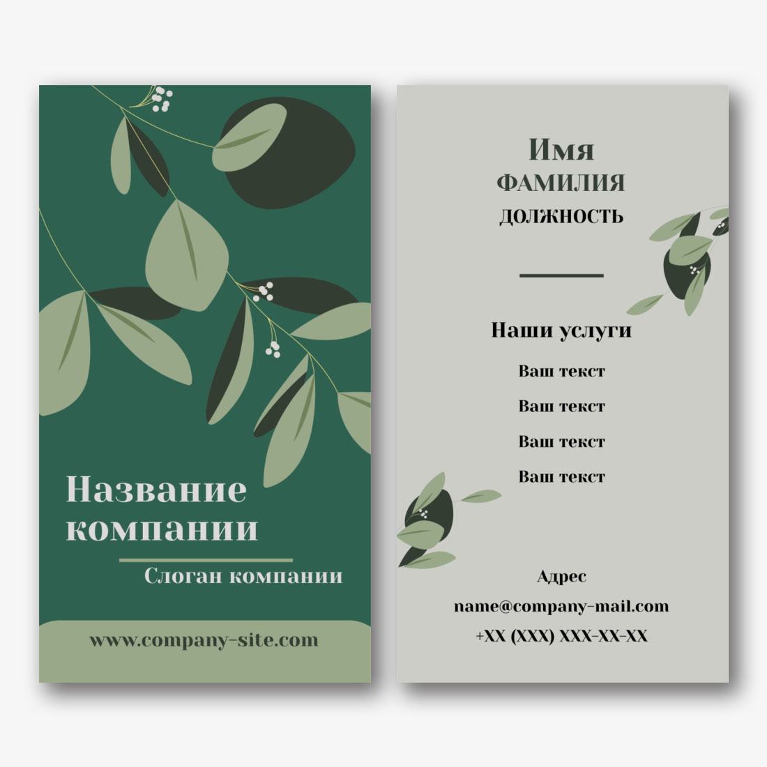 Бесплатный шаблон визитки фитодизайнера, аранжировщика цветов, цветовода оформителя. Создайте макет своими руками в конструкторе визиток.