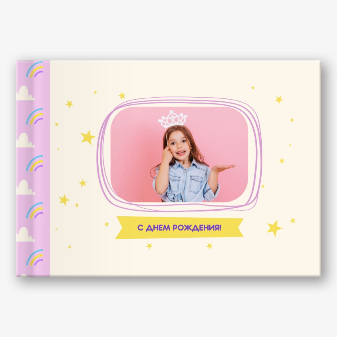Нежный шаблон горизонтальной фотокниги для новорожденной «Маленькая принцесса» - бесплатный, редактируется онлайн, идеален для первых фото.