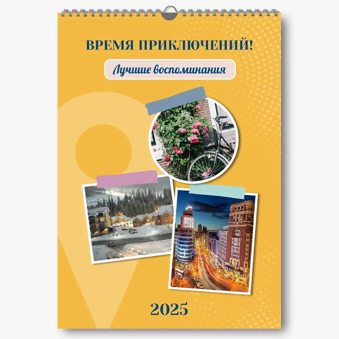 Бесплатный шаблон календаря с фото путешествий для создания уникального настенного календаря. Легко редактируется онлайн, подходит для личного использования, подарков и туристического бизнеса.