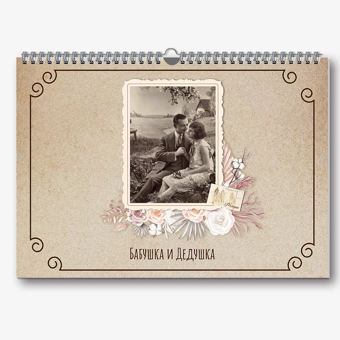 Большой горизонтальный настенный календарь с фото семьи, который легко персонализируется в онлайн-конструкторе.