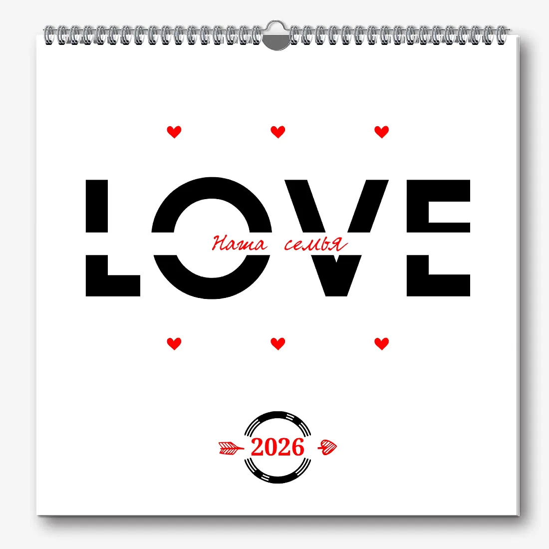 Квадратный настенный семейный календарь с фото, который легко персонализируется в онлайн-конструкторе.