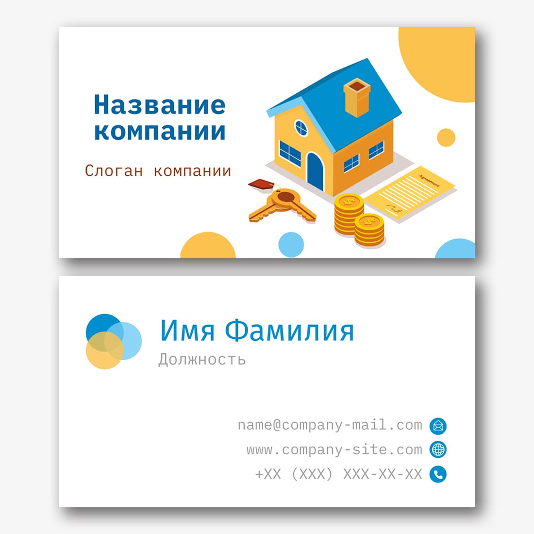 Бесплатный шаблон визитки риэлтора, агента по недвижимости. Создайте макет своими руками в конструкторе визиток.