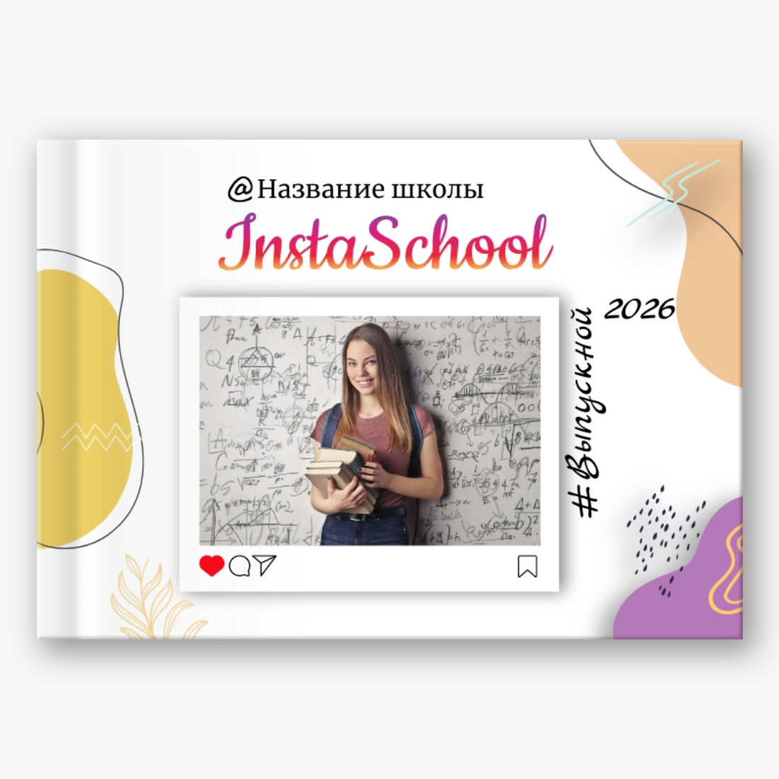 Бесплатный шаблон фотокниги выпускников старшей школы в стиле Инстаграм. Создайте макет своими руками в онлайн-конструкторе фотокниг.