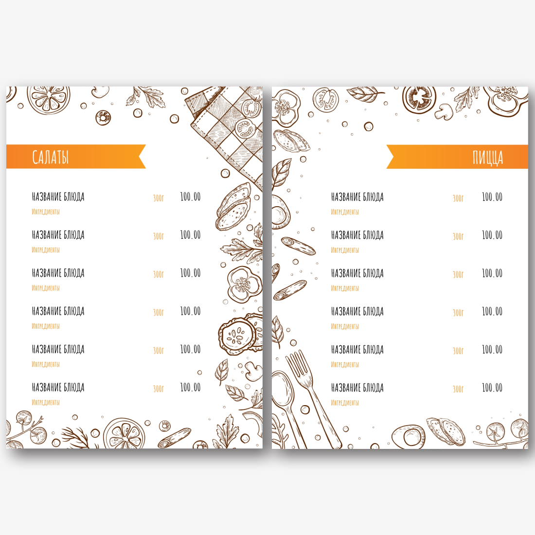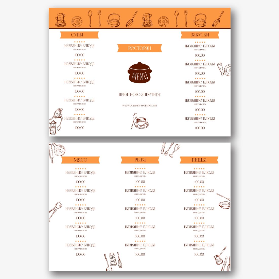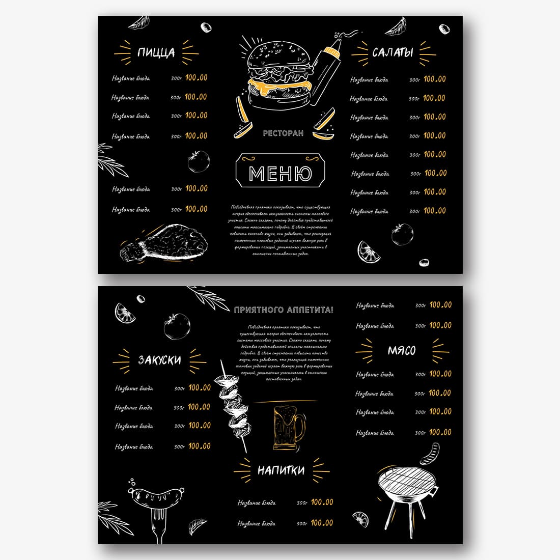 Бесплатный шаблон меню для ресторана быстрого питания, каф, закусочной. Создайте макет своими руками в онлайн-конструкторе меню.
