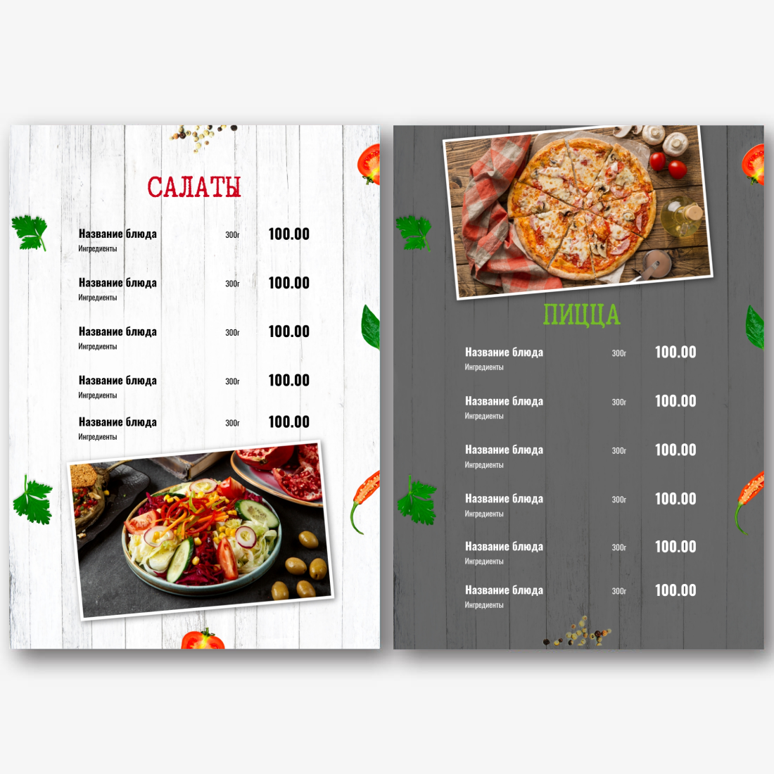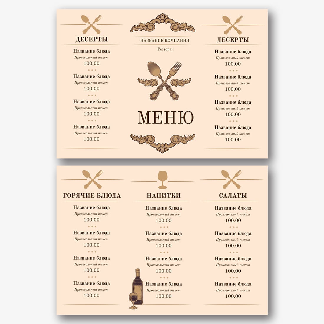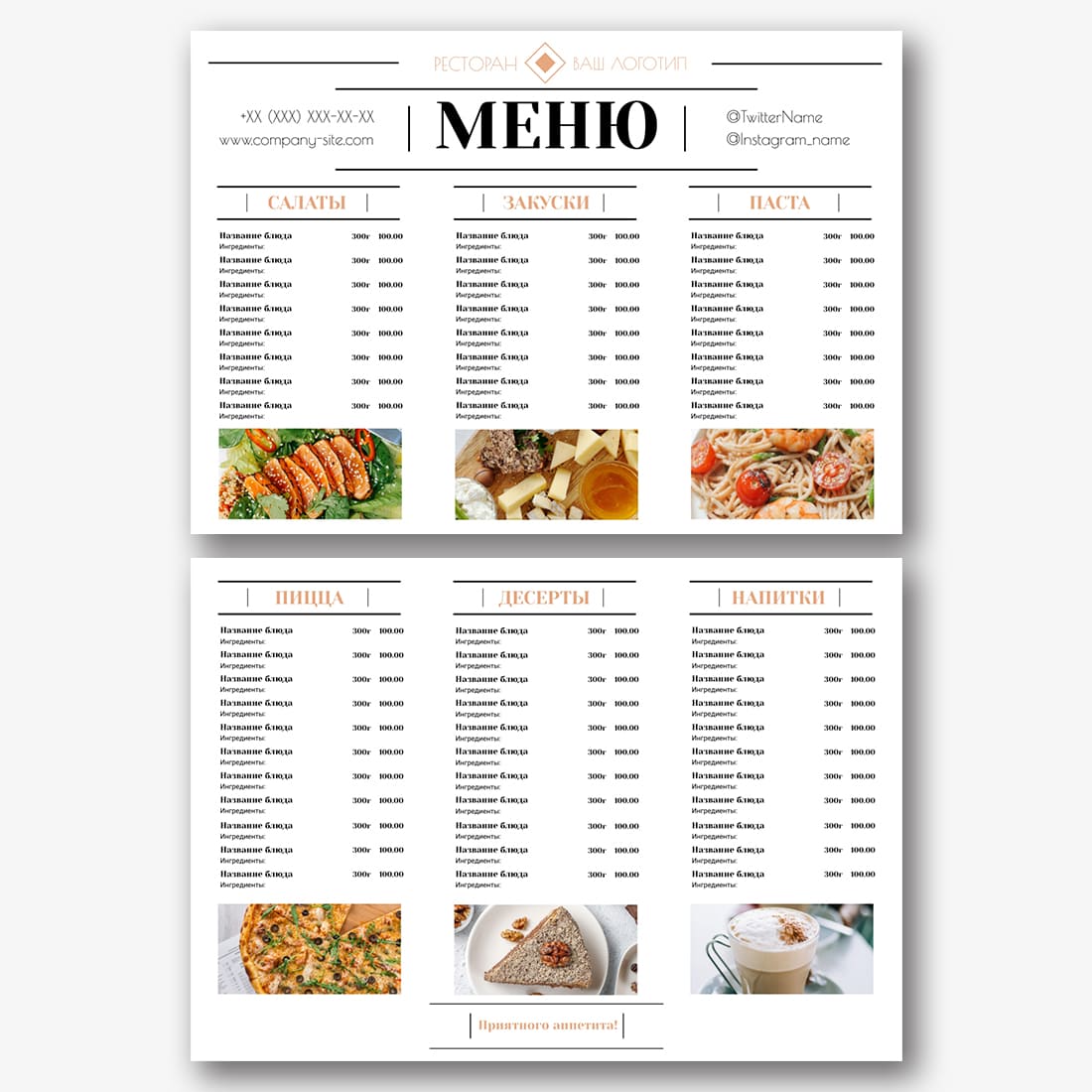 Бесплатный шаблон меню для ресторана быстрого питания, каф, закусочной. Создайте макет своими руками в онлайн-конструкторе меню.