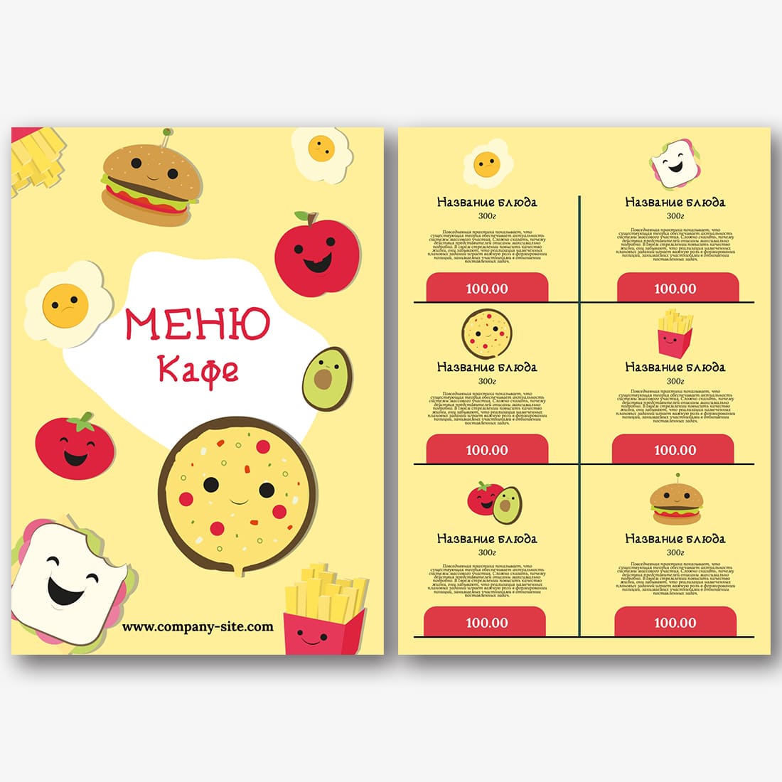 Бесплатный шаблон меню для ресторана быстрого питания, кафе, столовой. Создайте макет своими руками в онлайн-конструкторе меню.