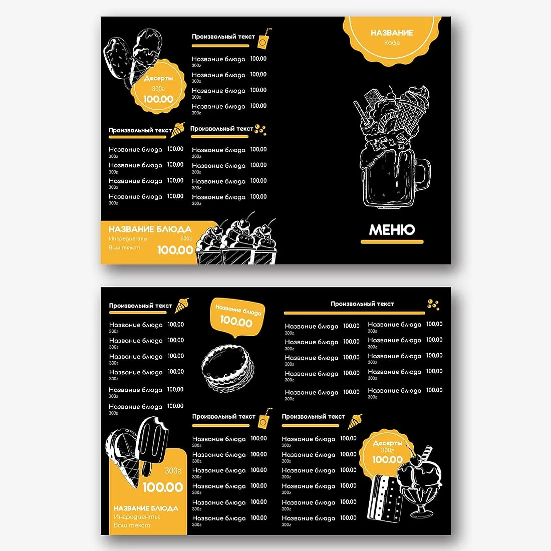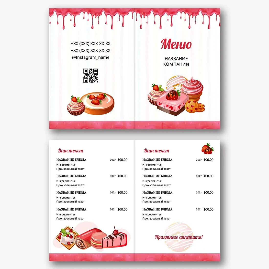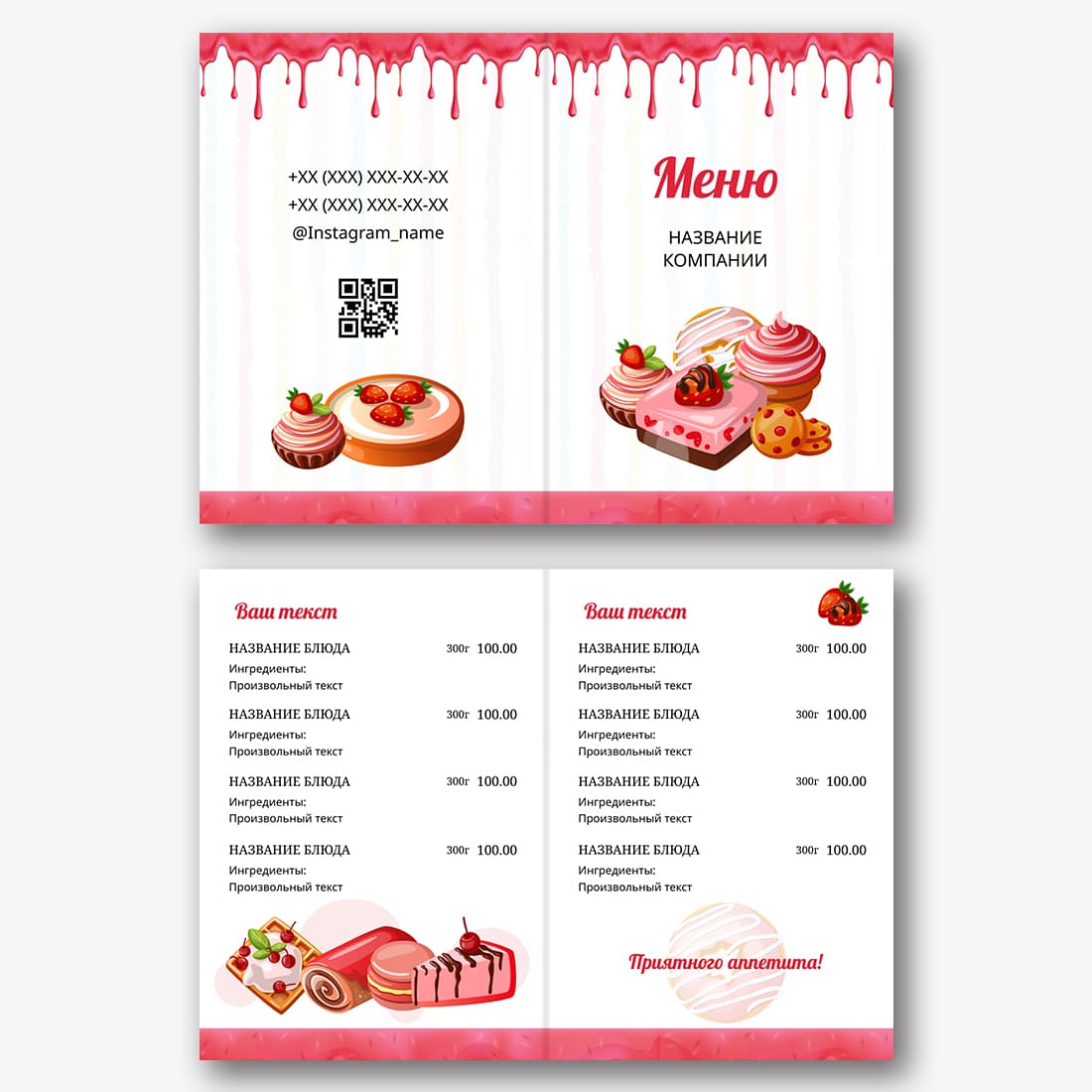 Бесплатный шаблон меню десертов для кафе, ресторана, кофейни. Создайте макет своими руками в онлайн-конструкторе меню.