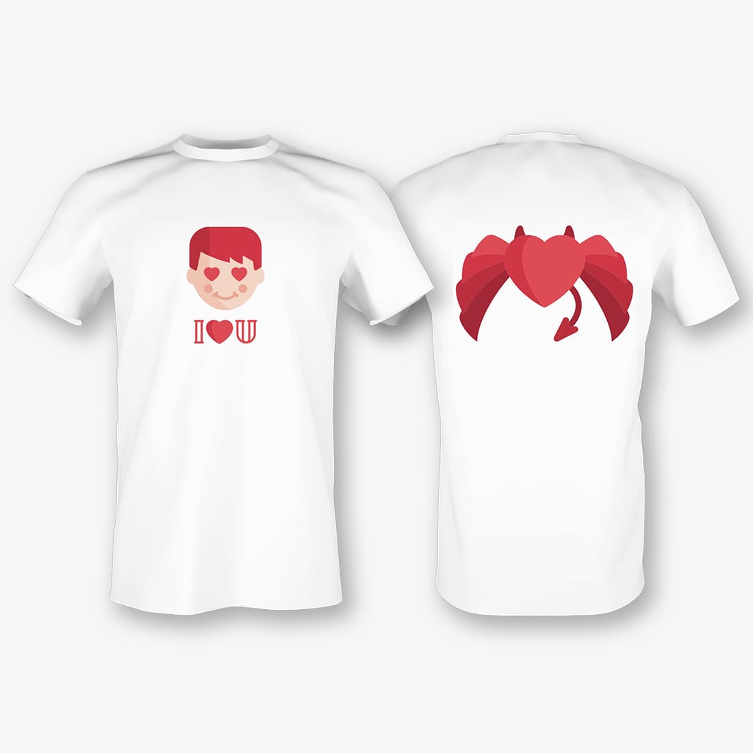 Бесплатный шаблон оригинальной мужской футболки с принтом для влюбленных, молодоженов. Создайте макет своими руками в онлайн-конструкторе футболок и толстовок.