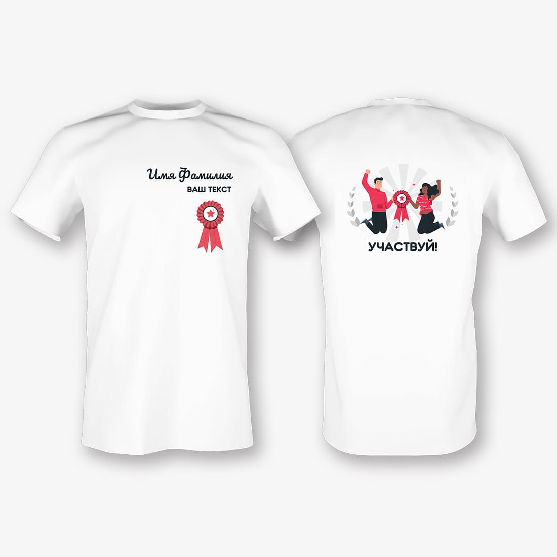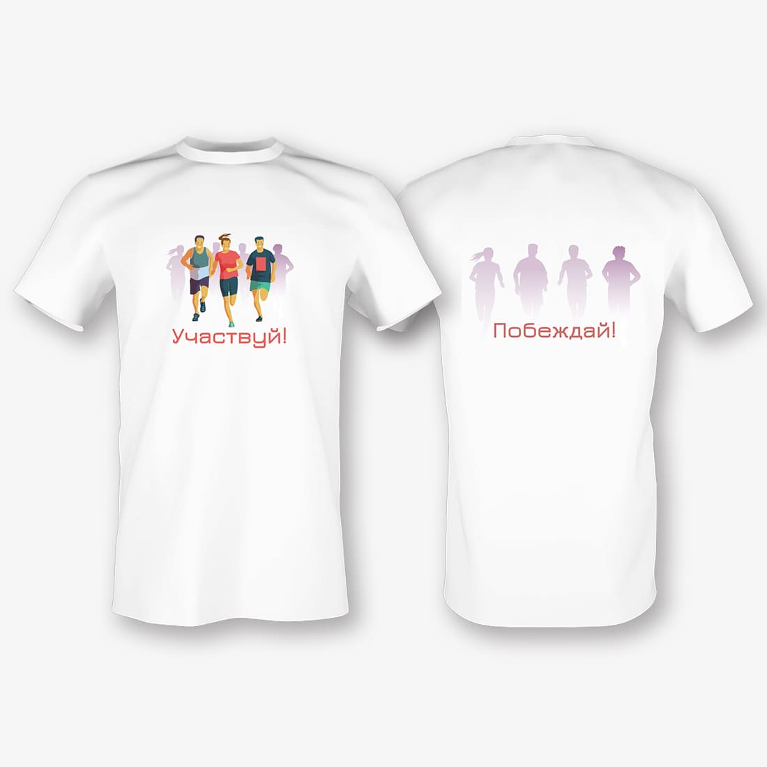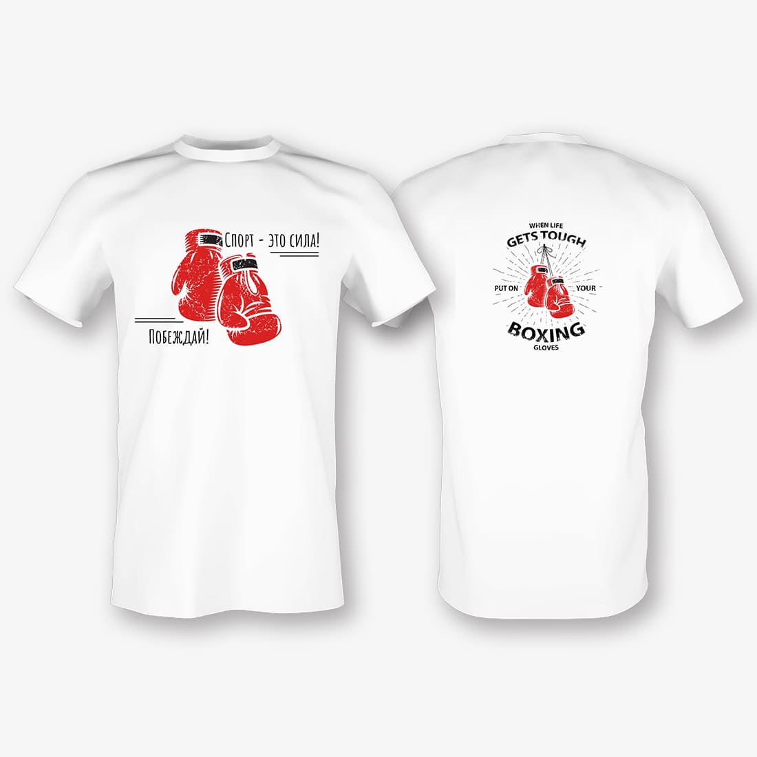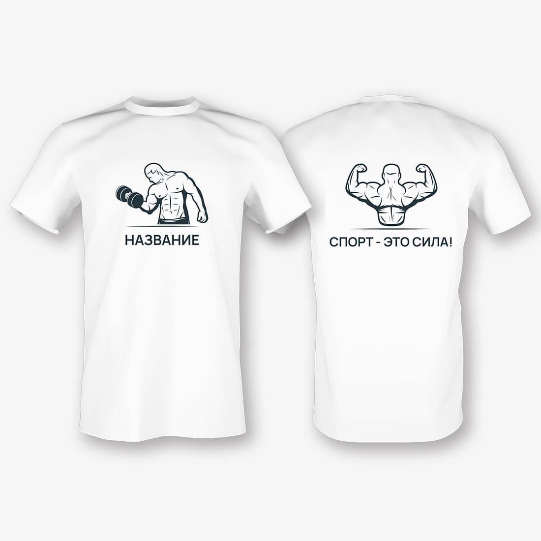 Бесплатный шаблон мужской футболки с принтом для работников тренажерного зала. Создайте макет своими руками в онлайн-конструкторе футболок и толстовок.