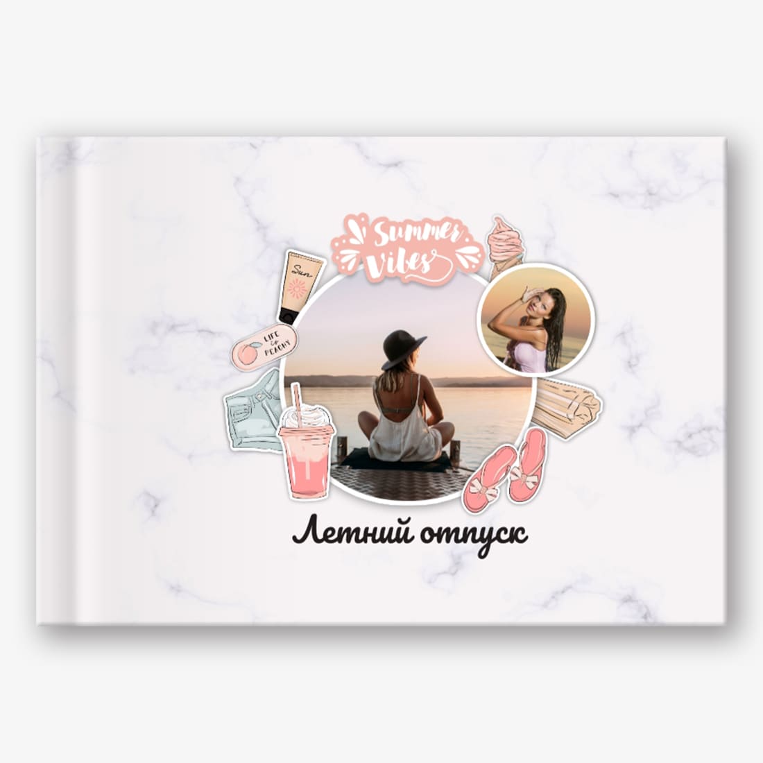 Бесплатный шаблон фотокниги воспоминаний про летний отдых с семьей. Создайте макет своими руками в онлайн-конструкторе фотокниг.