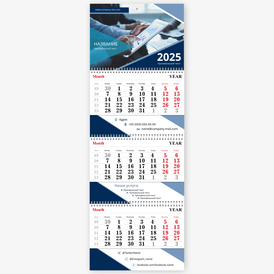 Бесплатный шаблон квартального рекламного календаря для рекламы фитнес клуба. Создайте макет своими руками в конструкторе календарей.