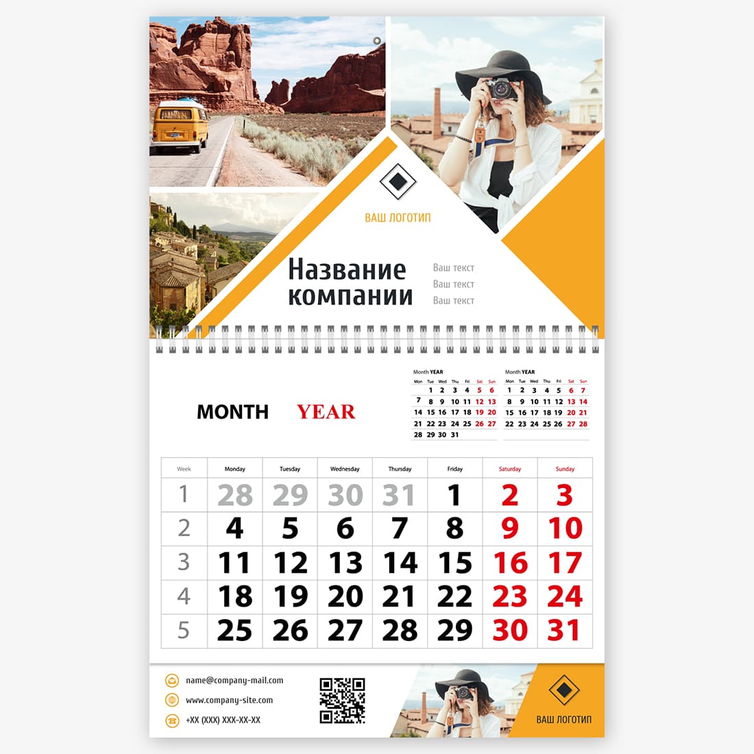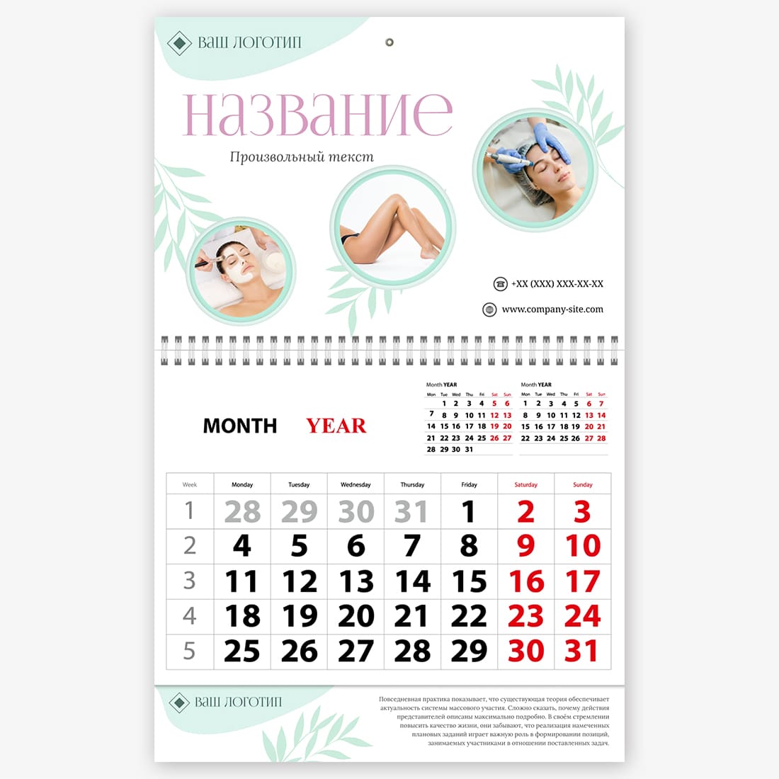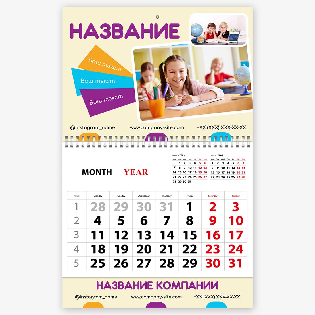 Бесплатный шаблон квартального рекламного календаря для рекламы фитнес центра. Создайте макет своими руками в конструкторе календарей.