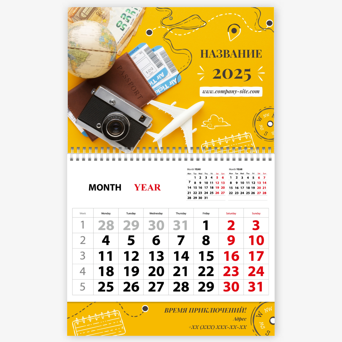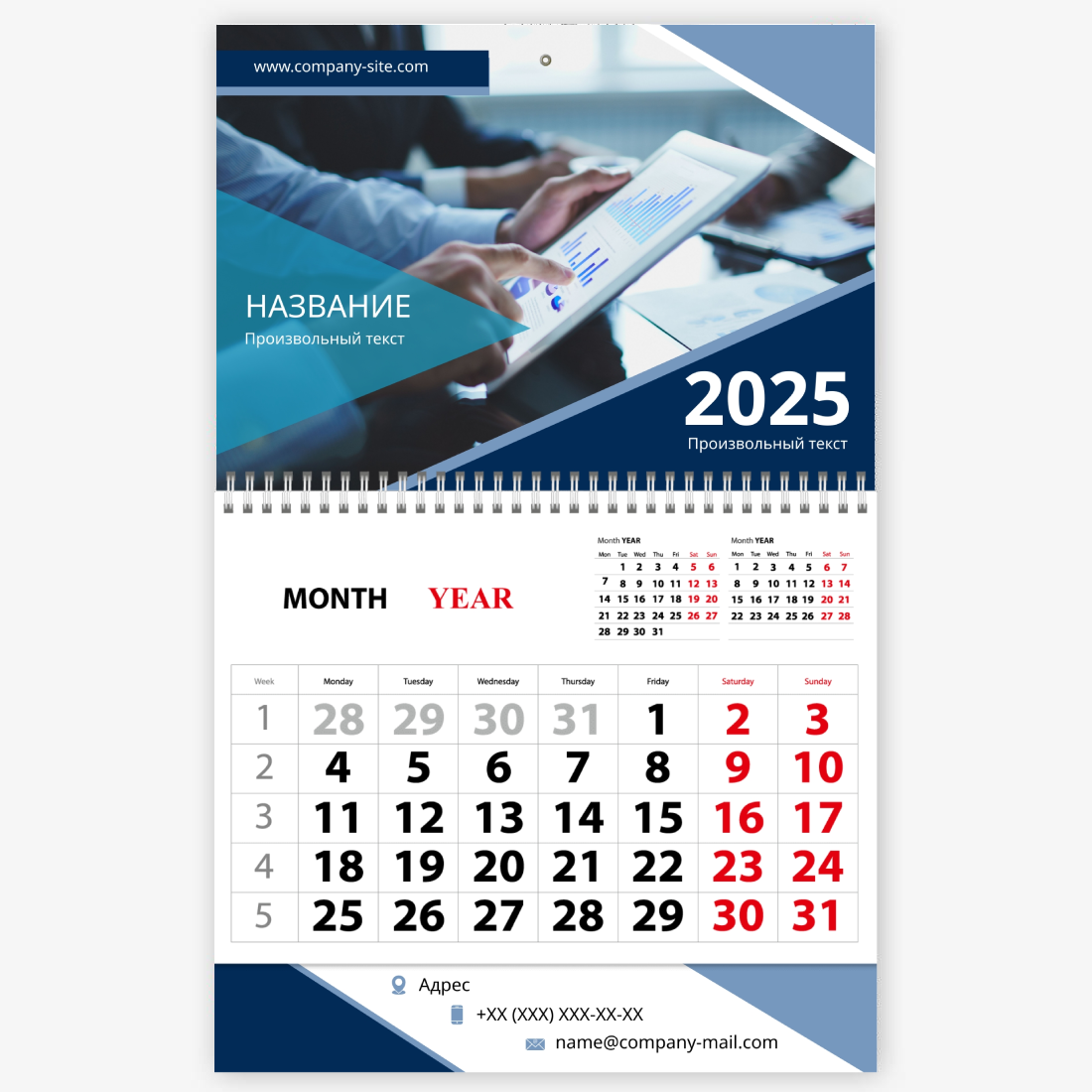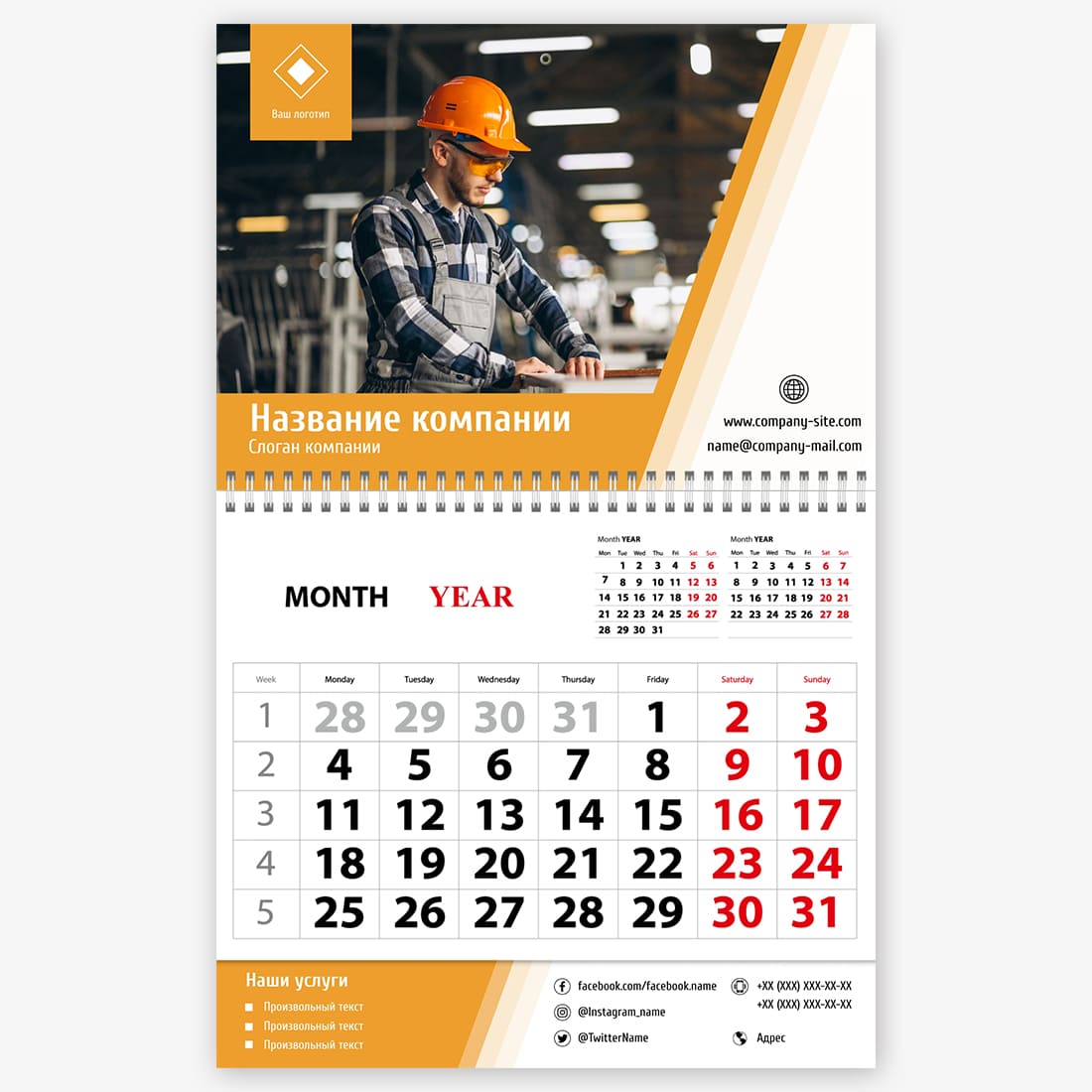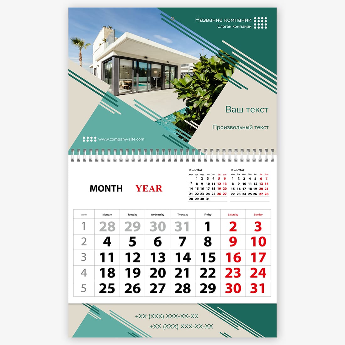Бесплатный шаблон квартального рекламного календаря для рекламы фитнес центра. Создайте макет своими руками в конструкторе календарей.