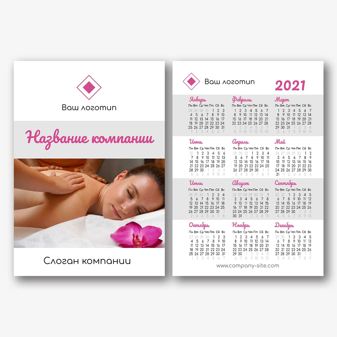 Бесплатный шаблон карманного календаря онлайн для рекламы школы макияжа, магазина косметики. Создайте макет своими руками в конструкторе календарей.
