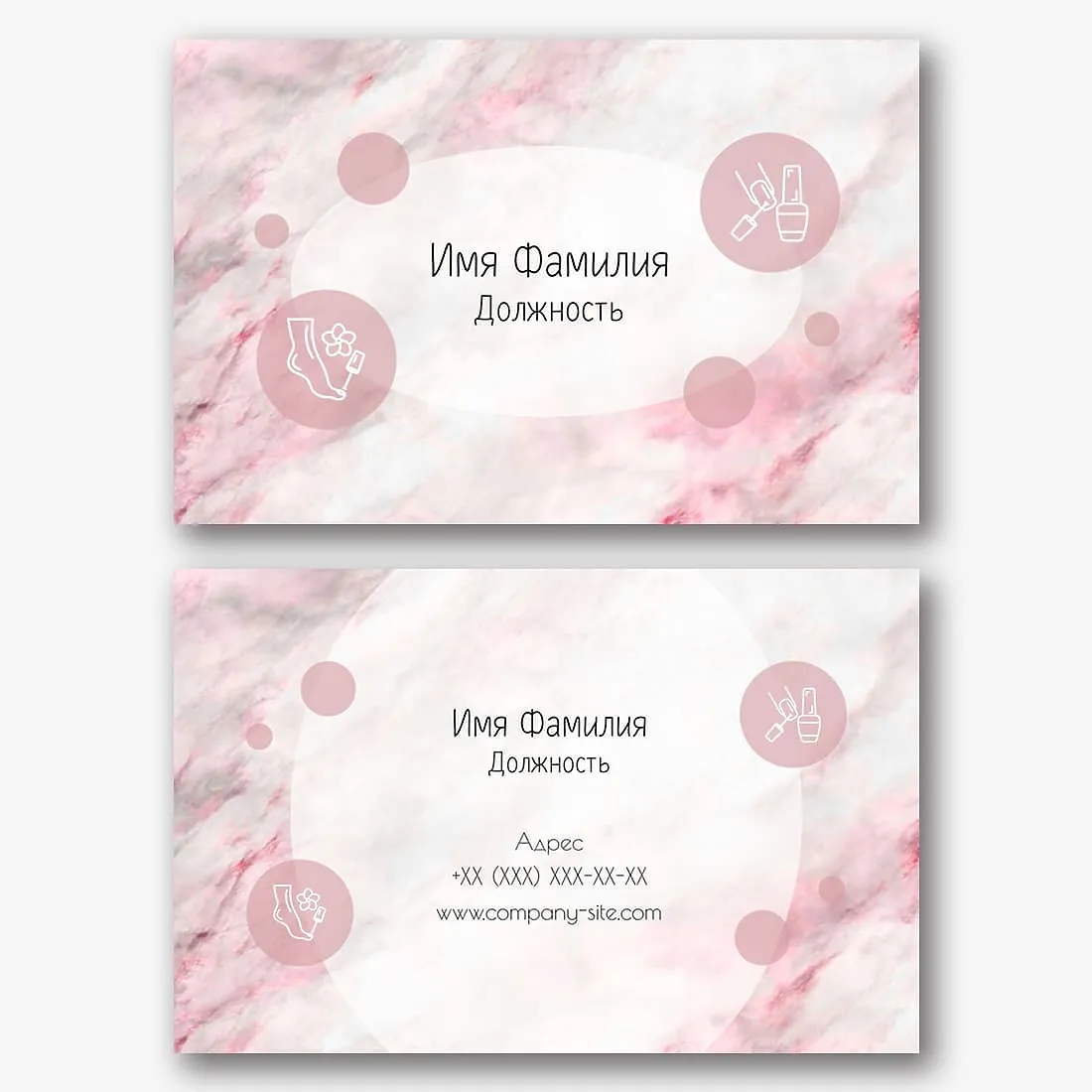 Бесплатный шаблон современной евро визитки маникюрного салона, мастера маникюра, салона красоты, beauty студии. Создайте макет визитки своими руками в онлайн-конструкторе визиток.