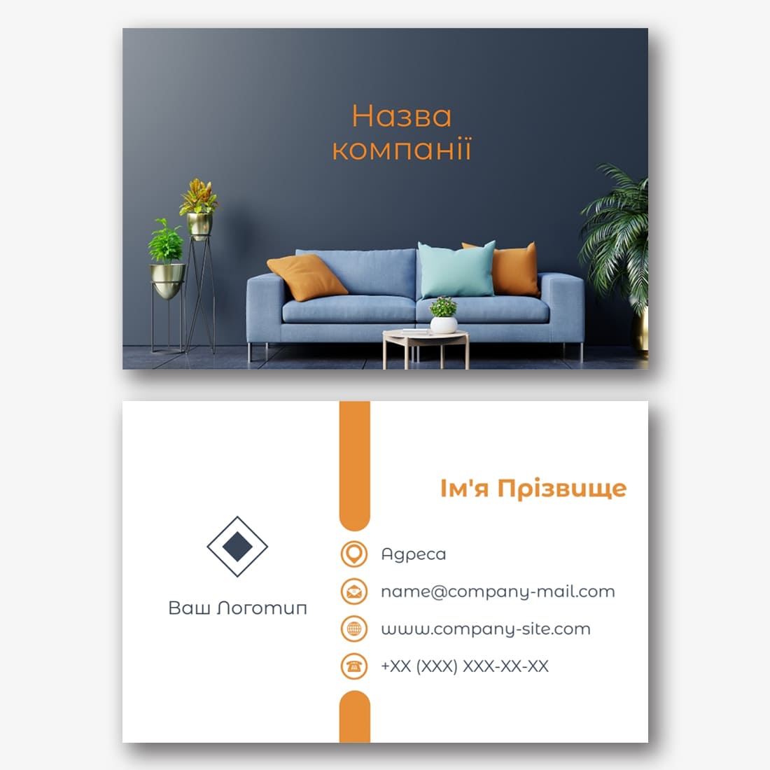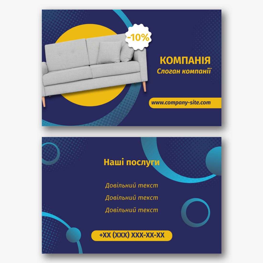 Безкоштовний шаблон візитки для магазину тюлі та штор, салону штор, виробника тканин. Створіть макет своїми руками в конструкторі візиток.