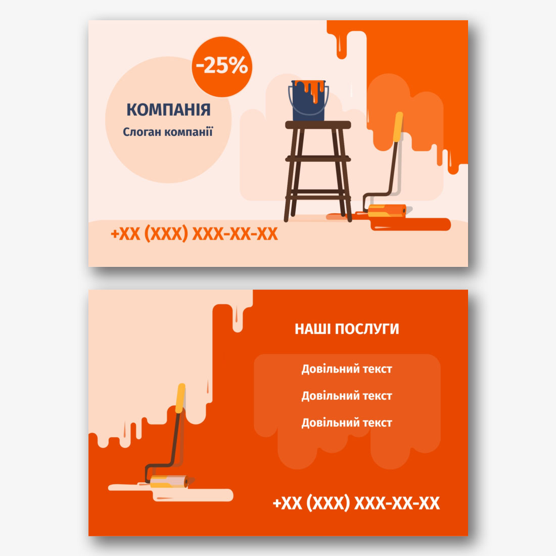 Безкоштовний шаблон візитки для бригади малярів, малярської майстерні, малярів. Створіть макет своїми руками в конструкторі візиток.